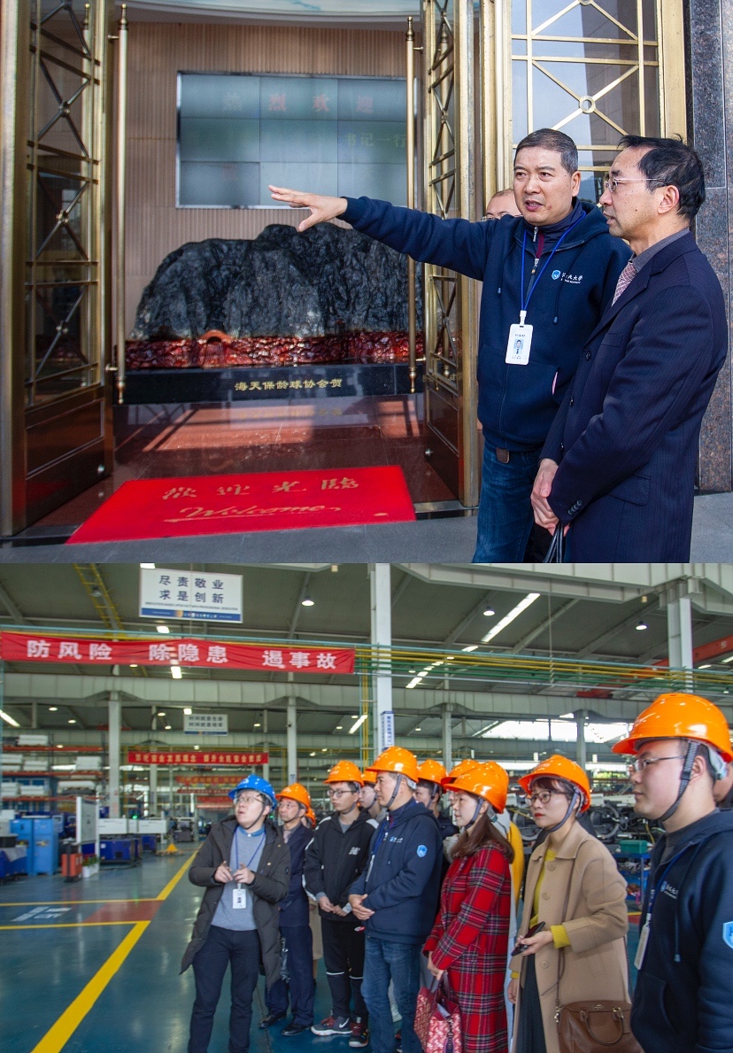 海天集团总裁助理、人力资源部部长虞文贤陪同机能师生参观海天集团