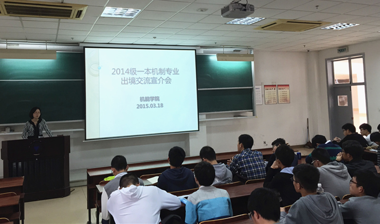 为进一步加快太阳集团tyc4633开放办学进程,全面铺开一本机制专业2015年暑期出境交流工作,2015年3月18日下午,太阳集团tyc46332014级一本机制专业出境交流宣介会在NF101举行。宣介会由辅导员吴琼老师主持,邀请太阳集团tyc4633副经理王义强教授参加,全体2014级一本机制专业员工参加。
