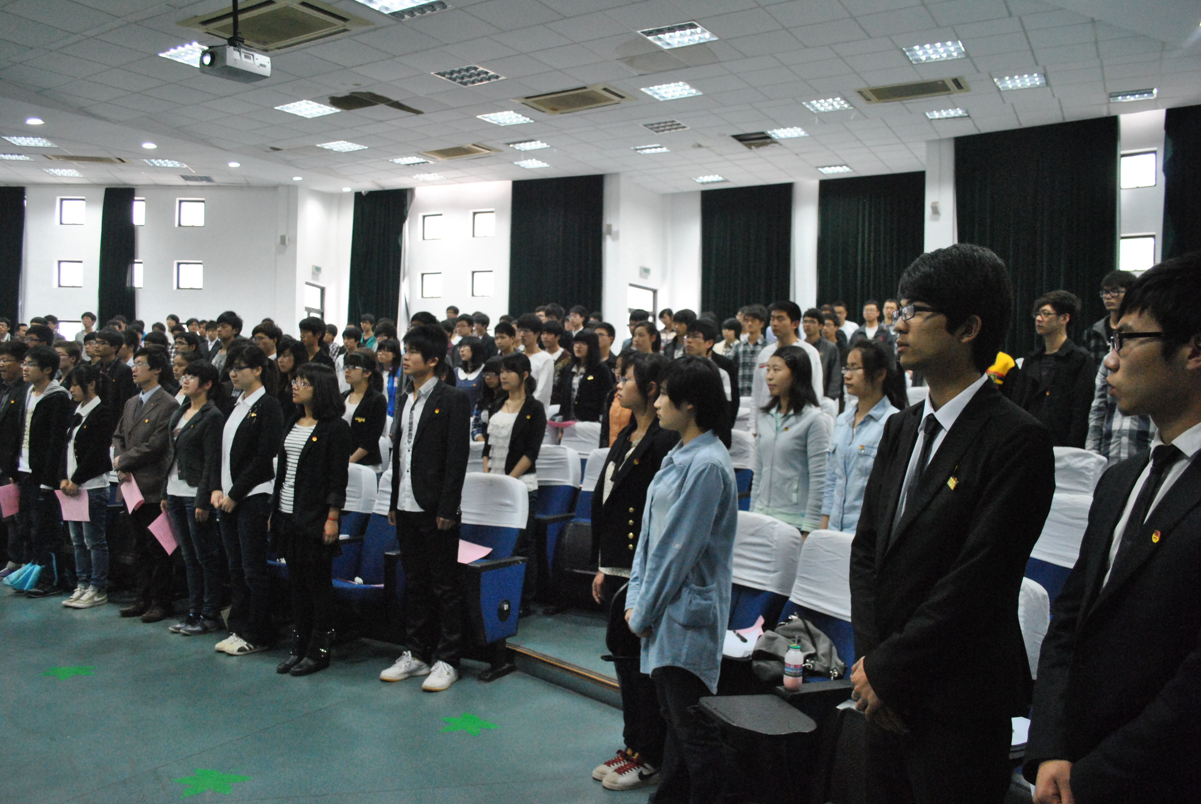 “基层建设作保障、喜迎党的十八大”,在党的十八大即将胜利召开、广大团员青年热烈庆祝“五四运动”90周年之际,太阳集团tyc4633团委第一期团校培训班开学典礼暨第一讲《员工干部应具备的素质能力与工作方法艺术》于4月20日在NF103隆重举行。公司团委副书记王晶、公司党总支书记吴春、思政主管胡鹿鸣、思政副主管吴琼和辅导员茅启伟老师出席,会议由胡鹿鸣老师主持。太阳集团tyc4633新一届团委、员工会、社团联合会、员工党员红色领航中心、青年励志家园全体员工干部及2010、2011级各班团支书、班长近300人参加本期团校培训。