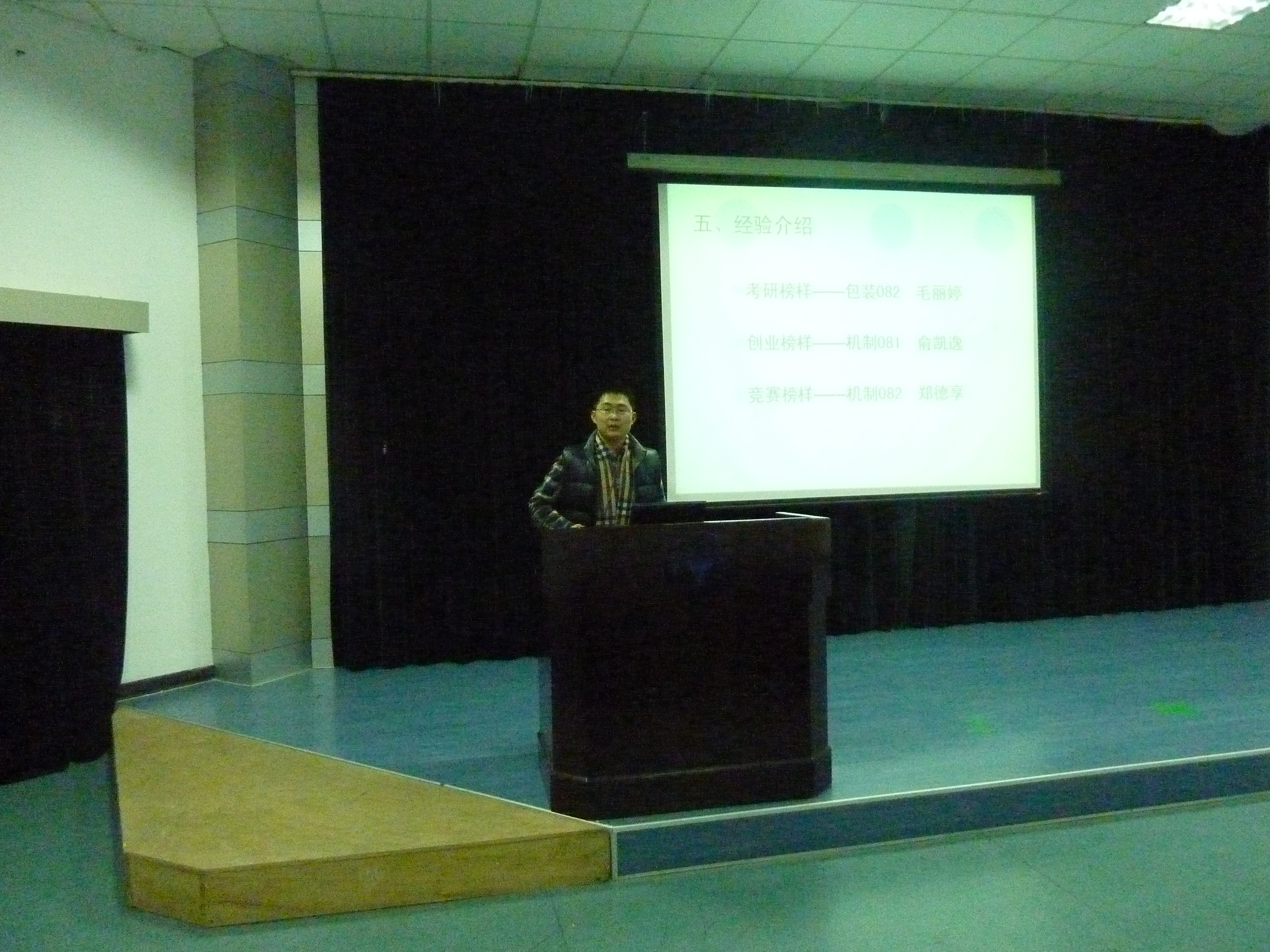 会议特别邀请包装所副所长张炜老师为同学们详细介绍了公司与美国佛罗里达理工公司建立的“3+1+X”合作项目,并从2008级应届毕业生中邀请了毛丽婷、俞凯逸、郑德享三名优秀的学长学姐分别从考研、创业、学科竞赛等三个方面与低年级员工交流经验、分享心得。