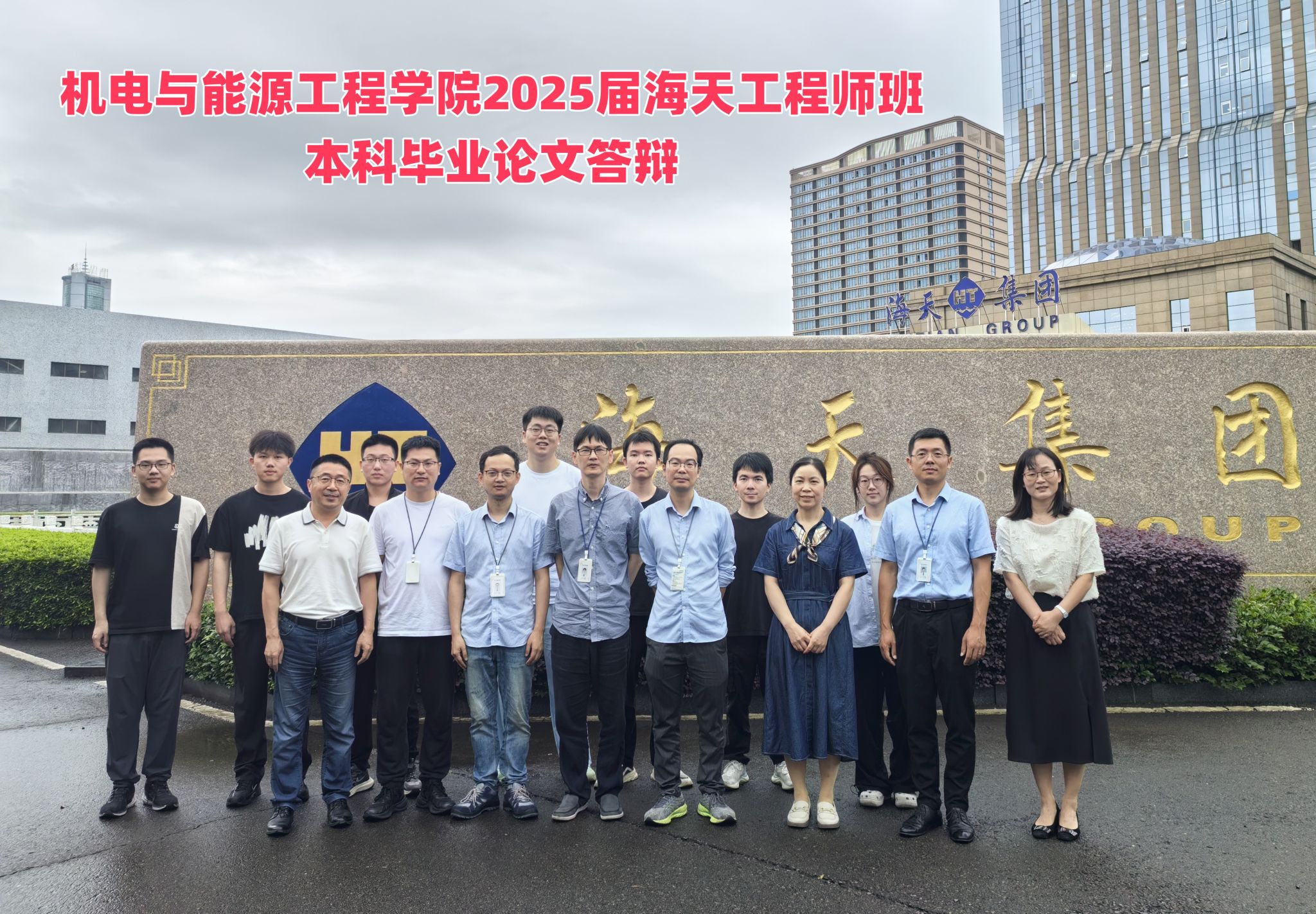 作为国家级制造业单项冠军企业,海天集团深度参与“海天工程师班”培养全流程。自2021年第一届“海天工程师班”开班以来,双方以员工实习、企业参与教学、员工参与企业项目、员工真刀真枪搞毕业设计为抓手,通过企业人才供应链的有效嵌入,校企多维互动,构建了全方位、多层次、深融汇的产教融合育人体系;创新“双导师制”(企业工程师+公司教师)指导毕业设计,近五年校企联合指导员工毕业生论文(设计)累计达70余人,构建了“实习-毕业设计-就业”贯通式培养链,入职海天集团毕业生人数超过100人。2025届7名员工进驻海天集团完成毕业论文,经答辩人汇报、答辩委员提问、答辩人现场回答和答辩委员打分等环节,所有员工均顺利通过毕业设计答辩,答辩委员和企业专家对本次参加答辩的毕业设计给予了高度评价。