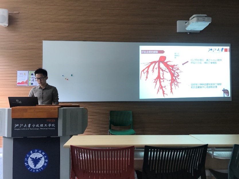 首先,徐华飞同学汇报了《肝脏与血管配准》的报告,为大家讲解基于CT和MRI图像识别的肝脏和血管配准的技术难点和解决办法;曹旭同学从一条小虫爬行的动画,开始了《尺蠖型压电驱动器的结构和特性》的报告,分析了不同尺蠖型压电驱动器的结构及优缺点,提出了一种新型设计结构并详细为大家进行了展示;吴映江同学又将大家的视线带入到海洋,做了《S型桨叶水动力分析》的报告,讲解桨叶工作原理及如何采用数值模拟方法进行仿真分析,对物理实验和仿真的结果进行了分析。在汇报结束后,老师和同学们积极提问相关技术问题,与报告者进行互动,活动气氛十分热烈。经投票,选出徐华飞同学作为此次学术沙龙的最佳报告者。