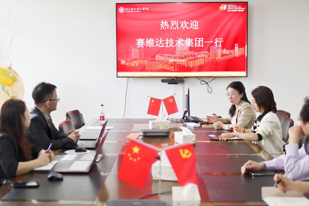 江美芬书记介绍了集团和公司基本情况,深入阐述了公司已开展的就业实践实习示范基地建设、专业人才培养模式改革、海天人才模式实践等成果,指出了与赛维达技术集团开展联合人才培养、“产学就”深度合作的可行性。随后,林建英副书记就校企人才培养、校企合作模式进行了深入对接和交流。