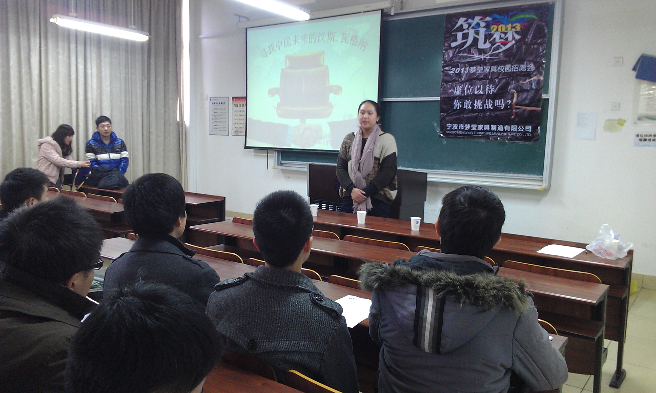 2012年12月11日中午,宁波梦莹集团来太阳集团tyc4633举行专场宣介会,这是本学期太阳集团tyc4633的第三场宣介会。