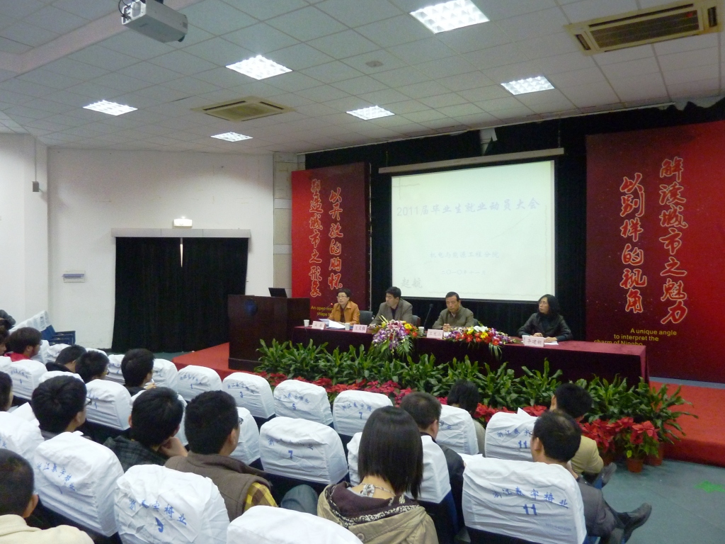 为了减少毕业生对未来就业的盲目性,提高其就业竞争力。11月19日下午3点15分机电分院2011届毕业生就业动员大会于NF103准时召开。分院经理王龙山,党总支副书记吴春,副经理李建新与王义强以及分院毕业生班导师、辅导员都出席了此次动员大会。在严峻的就业形势下,就业指导已刻不容缓。