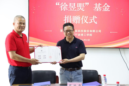 鲁东明副董事长和徐昱煚董事长代表校企双方签订了“徐昱煚基金”捐赠协议,并颁发捐赠证书。