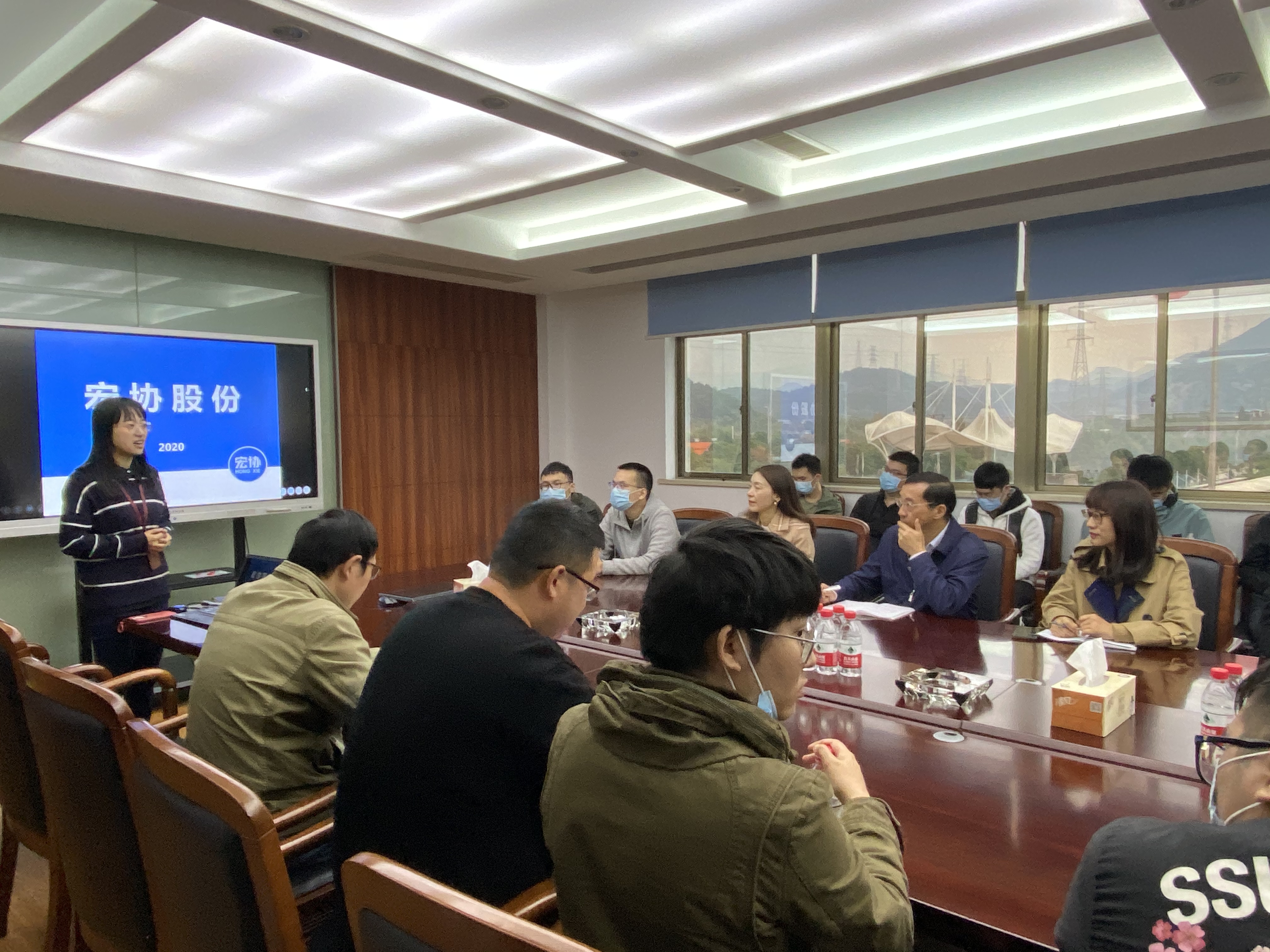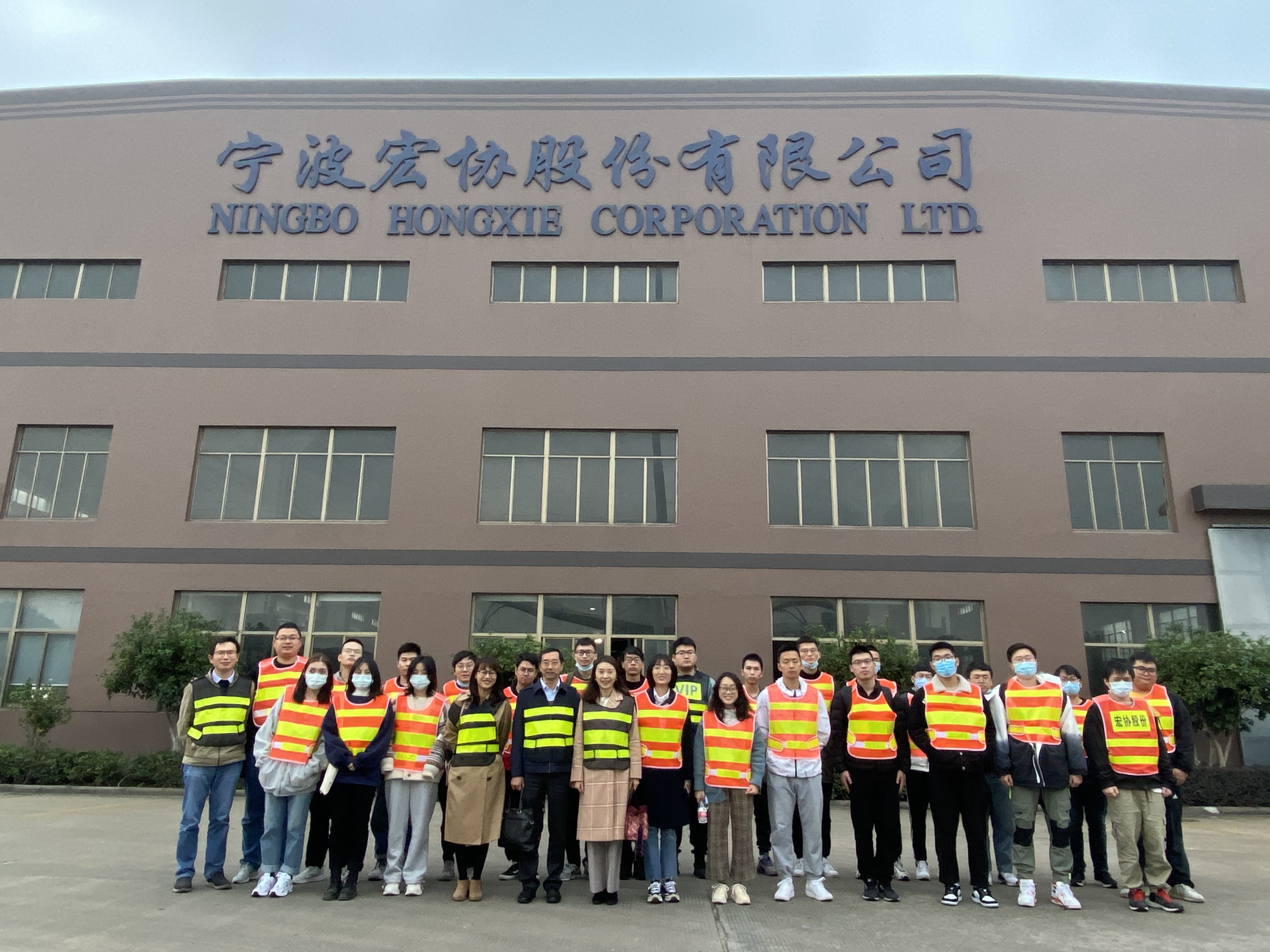 随后,走访了宁波宏协股份有限公司。公司人力资源部经理虞盼攀对公司师生们到来走访表示热烈欢迎,从公司文化、发展历程、产品特色、人才培养、招聘需求等方面介绍了企业,高度赞扬了理工毕业生综合素质好、吃苦耐劳、务实肯干的良好品质。童微星书记代表公司对企业连续6年来设立奖学金表示感谢,双方对人才培养等方面进行交流,员工代表何天磊分享了岗位上的经历和体会。