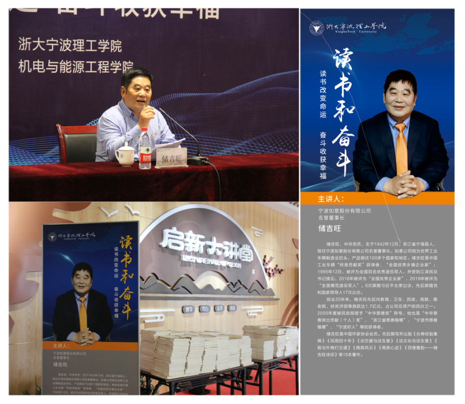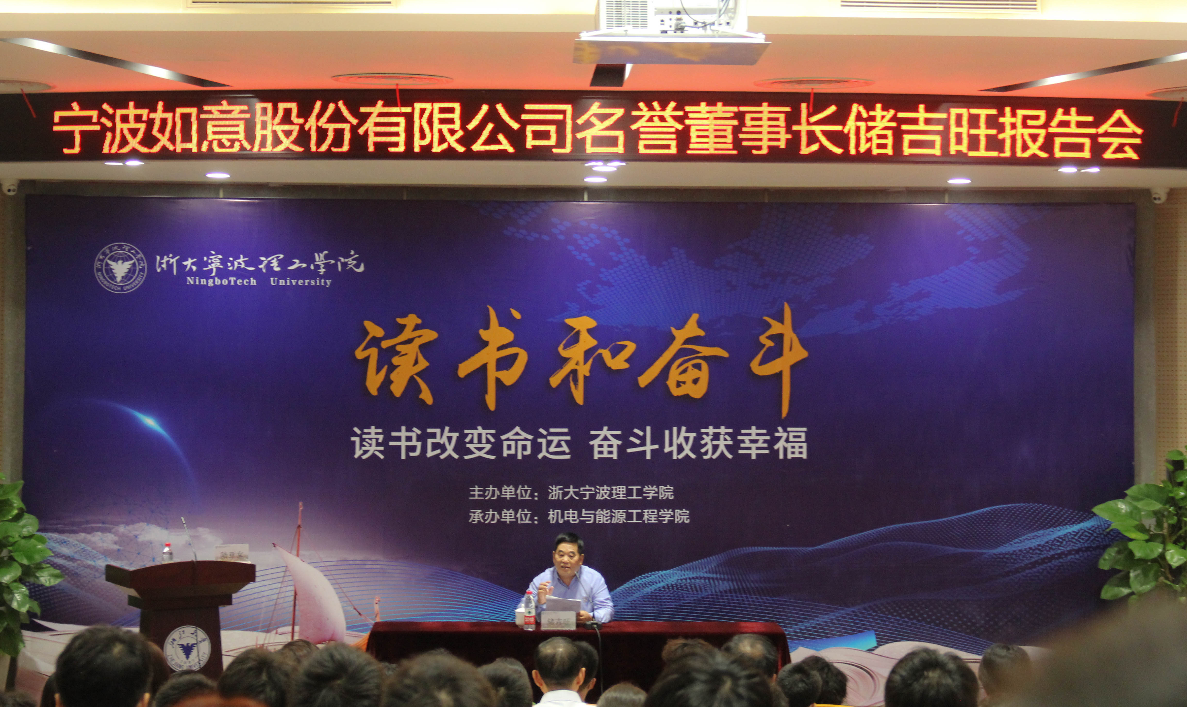10月9日下午,宁波如意股份有限公司名誉董事长储吉旺应邀来公司作“读书和奋斗——读书改变命运,奋斗收获幸福”主题报告。公司党委副书记冯建波出席报告会。党委学工部部长陆亚女主持报告会。