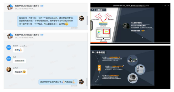 首先,由曹燕老师向各位指导老师及同学介绍公司及浙江省赛程相关安排,吴烨卿老师以“挑战杯”创业计划竞赛作品为例,结合自己往年参赛经验,为各组同学作了关于创业计划书撰写和PPT展示等培训。接下来由各组项目负责人介绍项目目前进展,提出存在的问题及后续修改方案,宋瑞银、王春鸽、吴尧锋三名项目指导老师对项目各方面改进提出意见并展开讨论,仇芳老师则针对往年指导项目经验,对同学们提出进一步完善建议。最后由王晶书记做总结讲话,希望同学们在公司团委的帮助下合理配备好团队,充分利用好各方资源加强与其他高校的交流和学习,发挥专业优势,主动联系指导老师,不断完善方案,认真备赛,争取在大赛中取得优异成绩。