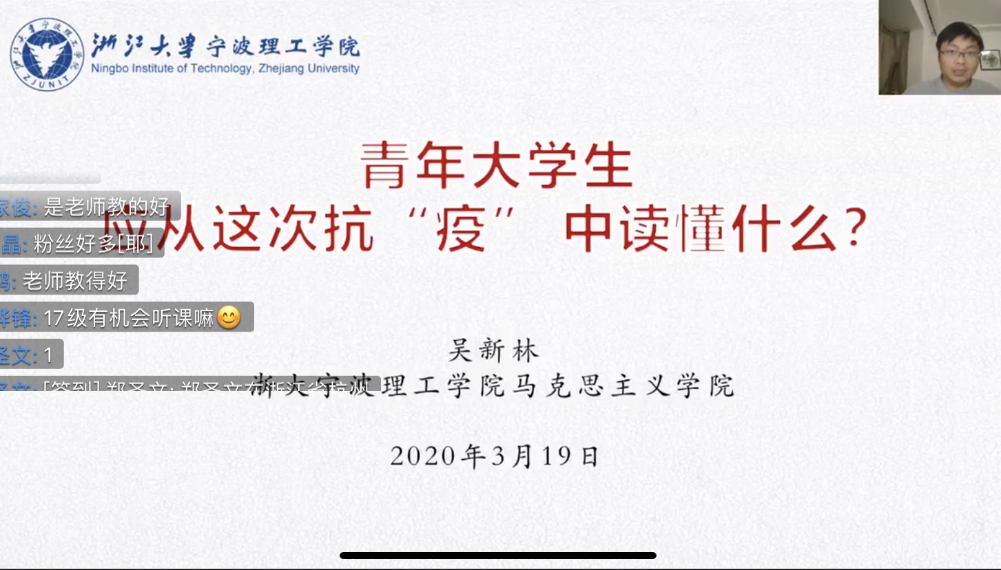 公司党委于3月19日邀请马克思主义公司吴新林老师为全体员工党员、积极分子带来《青年老员工应在抗“疫”中读懂什么》讲座,吴老师作为一名湖北人,结合自身的学习体悟,从多维度展现了本次新冠疫情防疫工作中彰显的中国力量和中国精神,讲座吸引了两百余名师生在线观看,反响热烈。