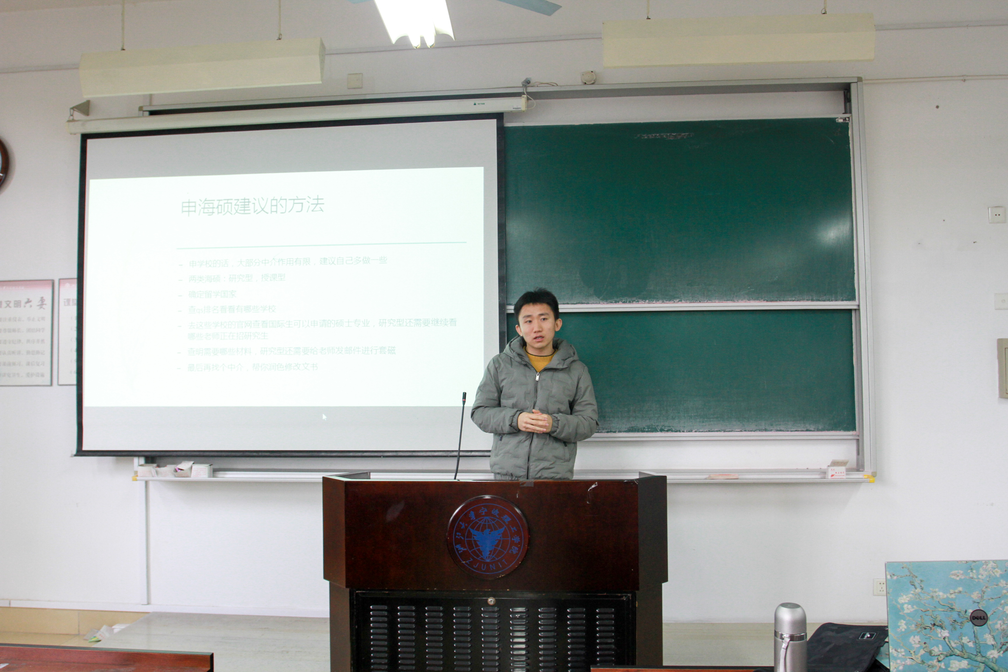 为提高公司员工对出国升学及求职就业方面的了解,太阳集团tyc4633于12月6日下午3点在NB205举行员工分享会,邀请了公司2017届优秀员工吴浩丘,来分享他出国的经验,并为学弟学妹做出国留学申请及就业方面的相关指导。