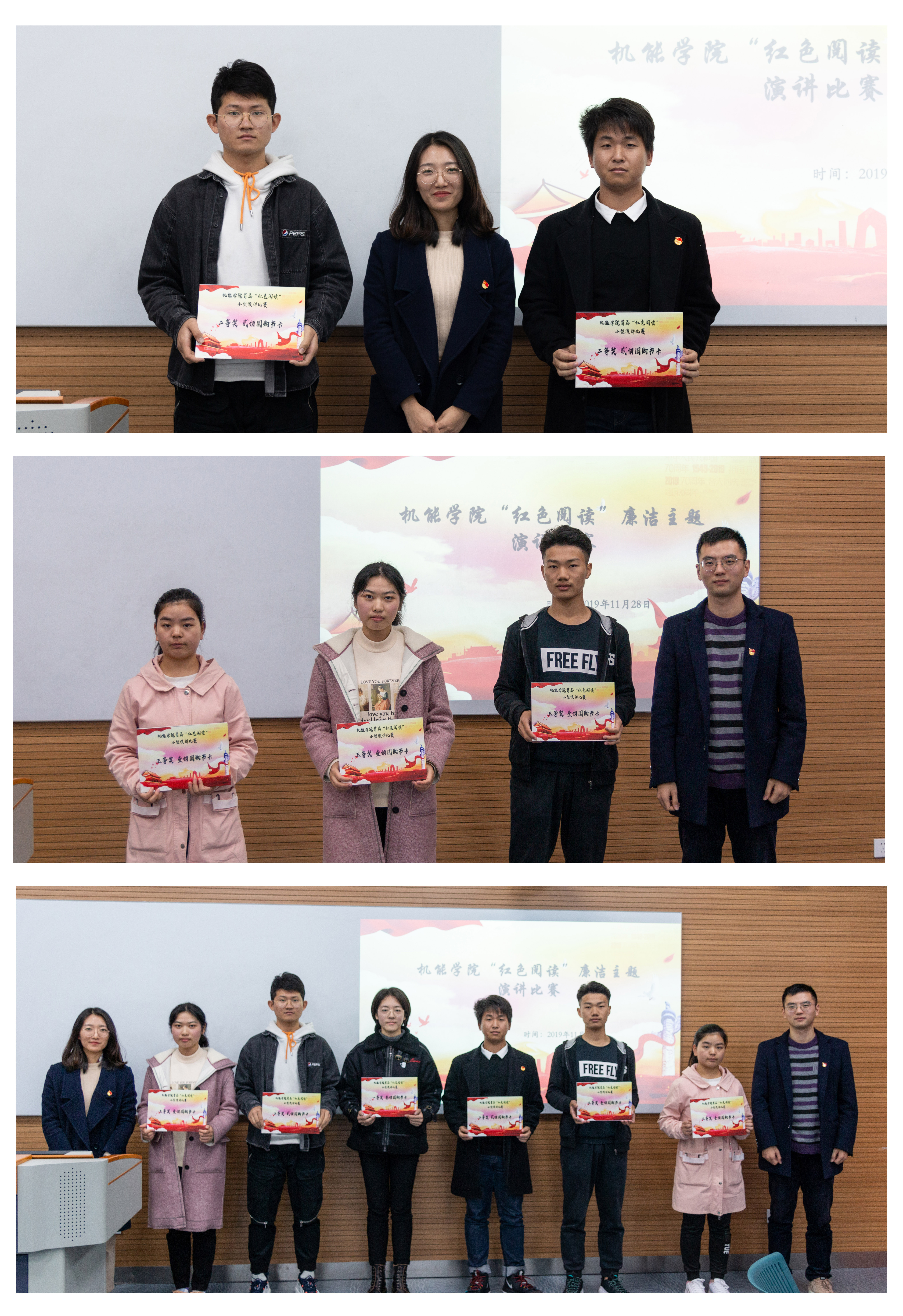 此次“红色阅读”活动以廉洁故事及相关书籍为主要阅读内容,参赛选手们自信满满,旁征博引,围绕社会主义核心价值观,结合当今社会现状,全面而生动地阐述了自己对于廉洁的独到见解,博得了在场观众一阵又一阵的掌声。最后,宋祉颐同学获得一等奖,倪阳锋、丁东阳同学获得二等奖,蒋依诺、柳家伟、付园园同学获得三等奖,徐泽、陈稳稳、沈轲同学获得优胜奖。大家对他们取得的优异成绩表示了热烈的祝贺,两位老师则认真细致地对每位参赛同学的演讲作了精彩点评。