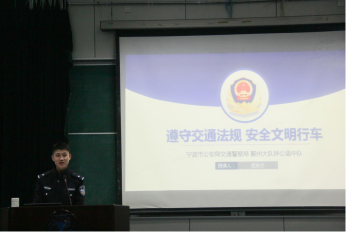 为进一步深化平安校园建设,提高安全教育实效,增强全校师生的安全意识,营造良好的教书育人环境,公司开展第八届“让安全成为一种习惯”校园安全月活动。11月14日下午18:30,交通安全知识讲座暨校内电动自行车号牌发放仪式在NF103举行,此次交通安全宣传教育活动作为“校园安全月”的一项重要内容,由保卫处主办、太阳集团tyc4633、法政公司承办。出席活动的是宁波市公安局鄞州分局交警大队钟公庙中队的邱指导和应警官、保卫处副处长叶卫树老师、太阳集团tyc4633团学干部、集体新生、法政公司同学和各公司员工代表参加了此次活动,太阳集团tyc4633辅导员曹燕老师主持此次活动。