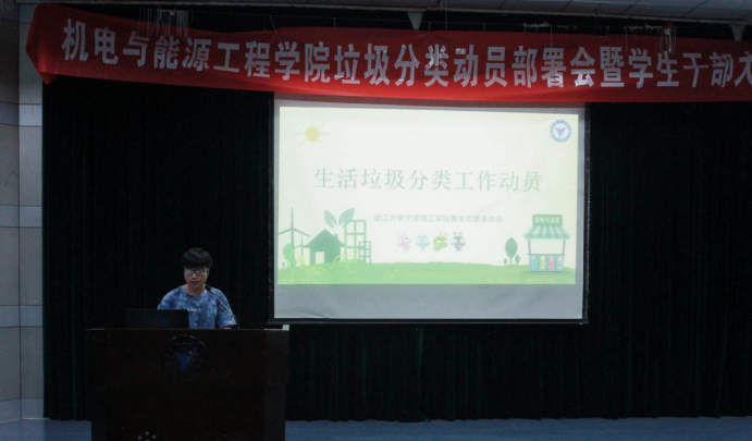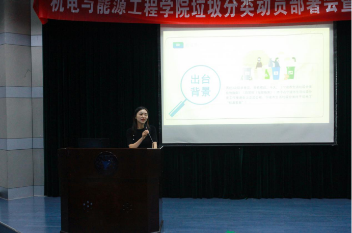 会议最后,太阳集团tyc4633青年志愿者协会会长黄敏同学进行了垃圾分类具体实施工作的宣讲。