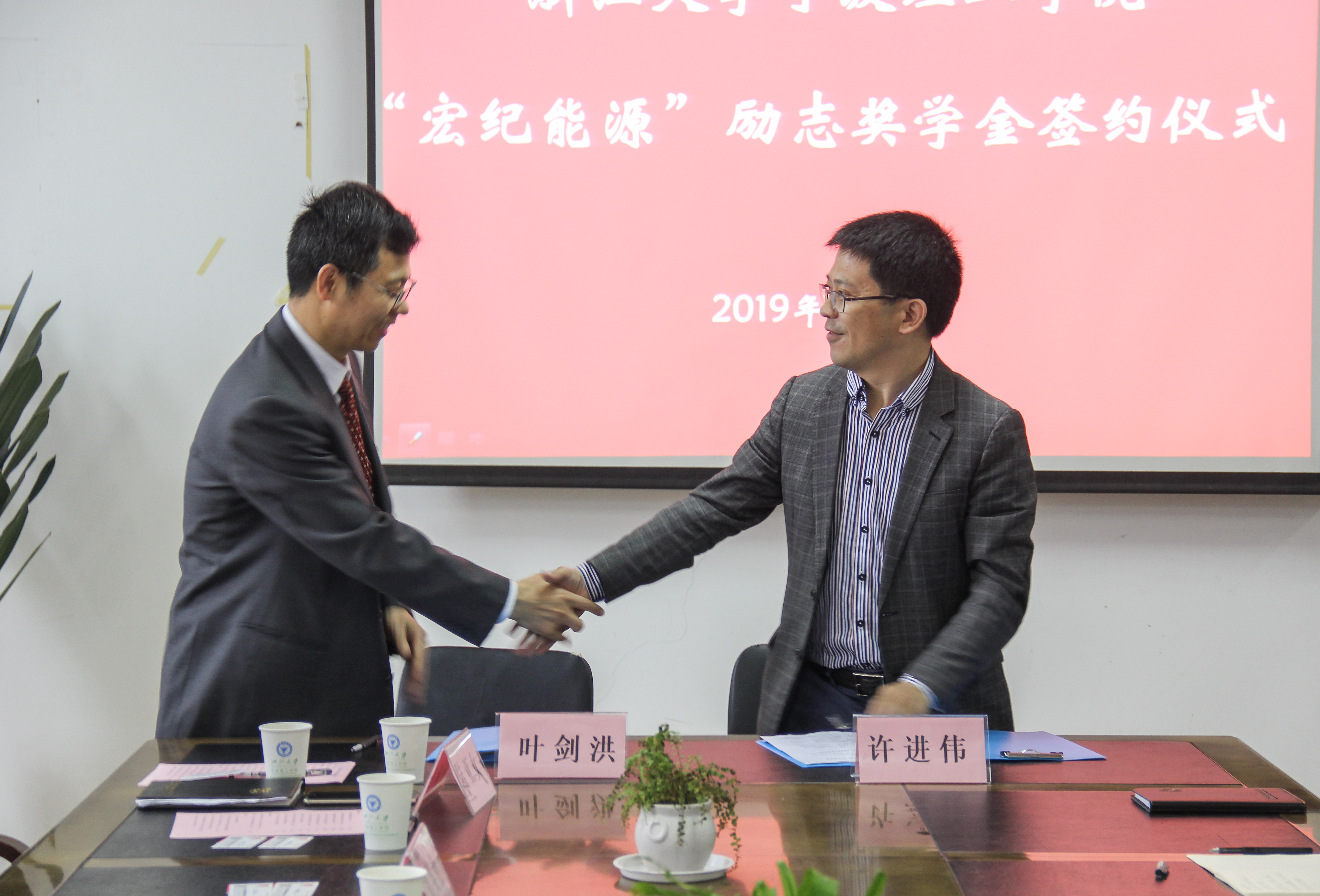 5月17日上午8:30,集团“宏纪能源”励志奖学金签约仪式在太阳集团tyc4633会议室举行。浙江宏纪能源科技有限公司董事长许进伟、总经理(太阳集团tyc4633优秀员工)王炎震、董事长助理李攀成,集团教育发展基金会理事长费英勤、秘书长叶剑洪,公司党委学工部部长、员工处处长陆亚女,太阳集团tyc4633经理陈光明、党委书记副经理童微星、副经理胡长兴、党委副书记王晶等领导和嘉宾出席会议。太阳集团tyc4633学工办全体老师以及能源与环境系统工程专业员工代表参加会议。本次签约仪式由公司党委书记童微星主持。