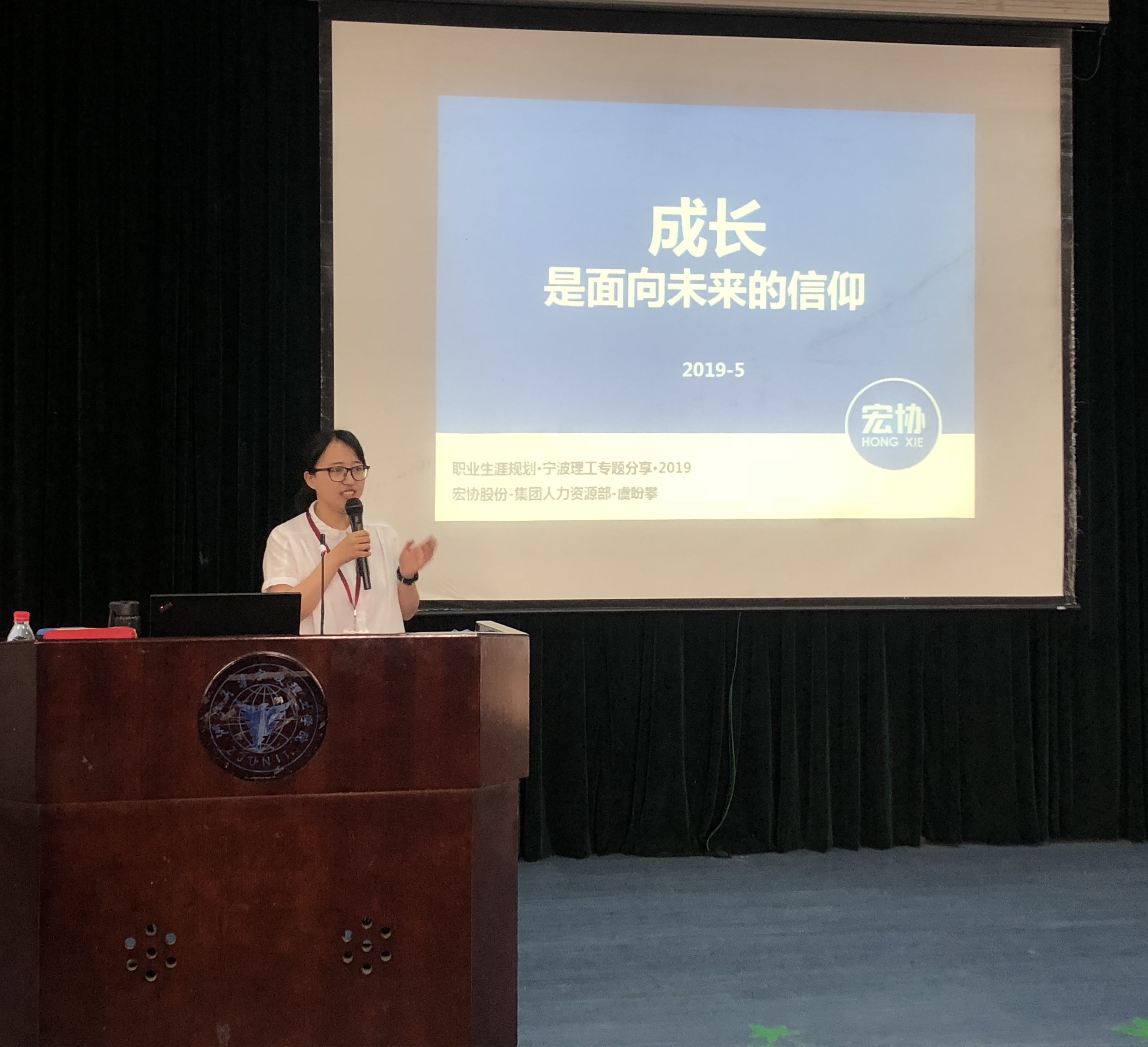 为进一步加强对员工的就业指导和职业规划,推进校企合作,太阳集团tyc4633于5月10日特邀宁波宏协股份有限公司人力资源部经理虞盼攀女士为太阳集团tyc46332016级全体员工带来《成长,是面向未来的信仰》专题讲座,讲座由公司学工办思政副主管仇芳老师主持。