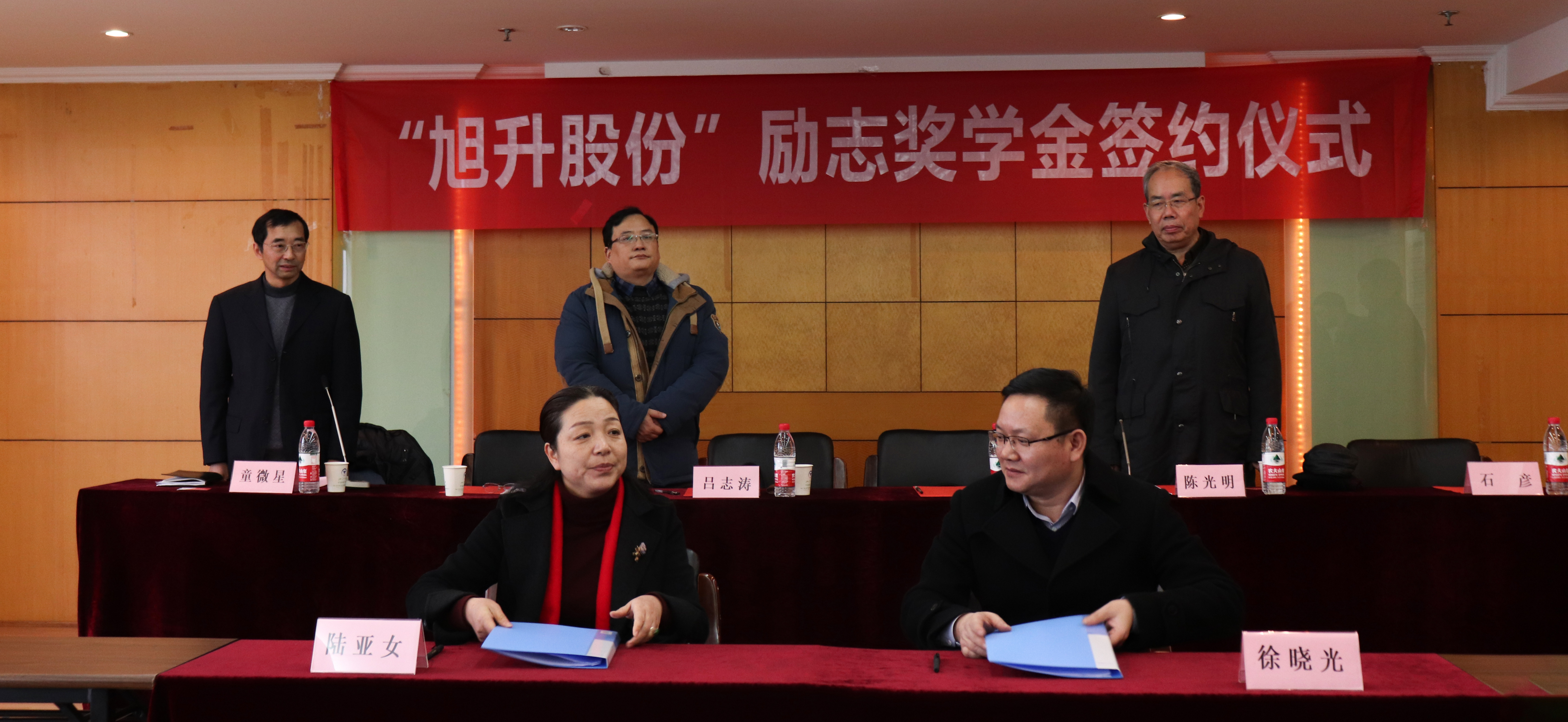 会议开始前,童微星老师介绍了“旭升股份”励志奖学金设立的背景,并鼓励获得奖学金的同学努力学习、认真工作,为社会建设贡献自己的一份力量。接着,陆亚女老师和宁波旭升汽车技术股份有限公司副总裁徐晓光先生代表校企双方签订“旭升股份”励志奖学金设立协议书。