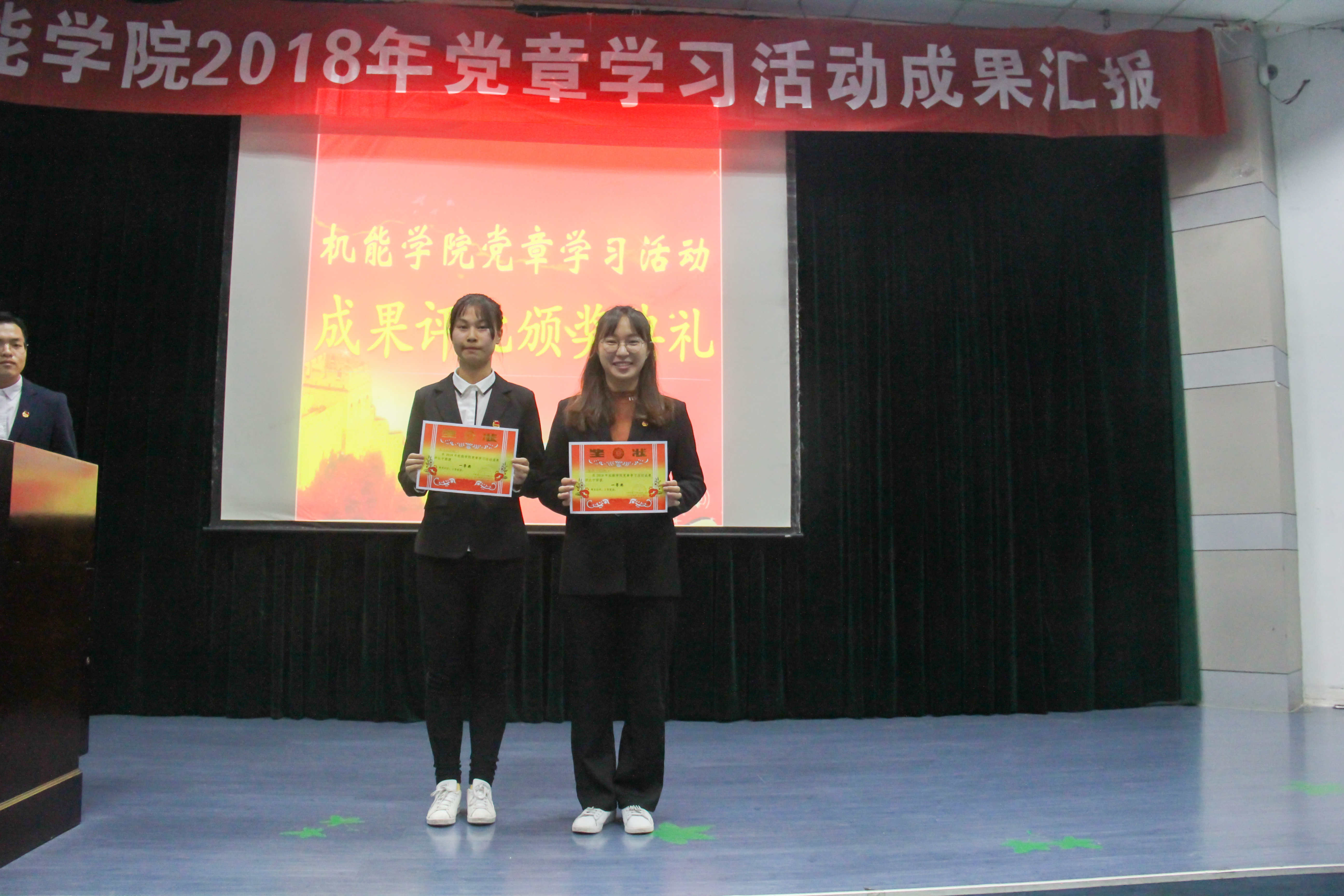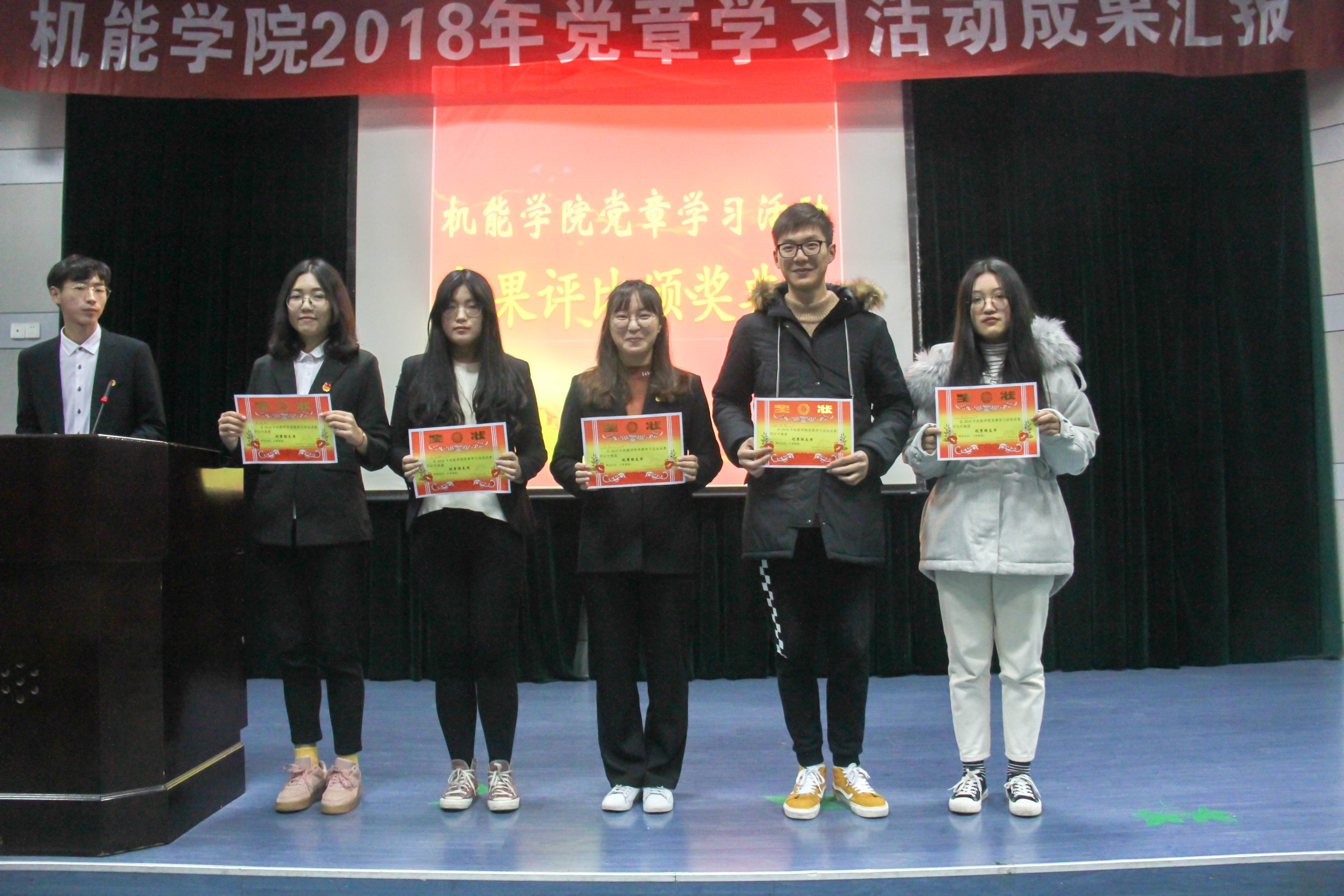 全体起立,奏唱国歌后,由公司团委副书记徐星晔同学致辞。他回顾了近两个月各支部开展的各类活动并做总结。之后由各班团支部负责人上台,通过丰富多彩的PPT、视频等汇报方式,展示各支部的活动成果,各支部的活动形式多样,有主题班会、报告会、特色团建等。经现场评审,选出了本次党章学习活动一等奖为能源162班、机电182班,二等奖为机电181班、机电171班、包装161班,三等奖为能源173班、机制182班、机制183班、能源181班、机制求是181班,以及党章学习活动优秀团支书郑盼儿、鲍則艳、王中卉、方卓婷和徐莞雯。最后,由团支书代表能源162班郑盼儿对本次活动进行总结,并结合自身经历跟大家分享了工作感悟。