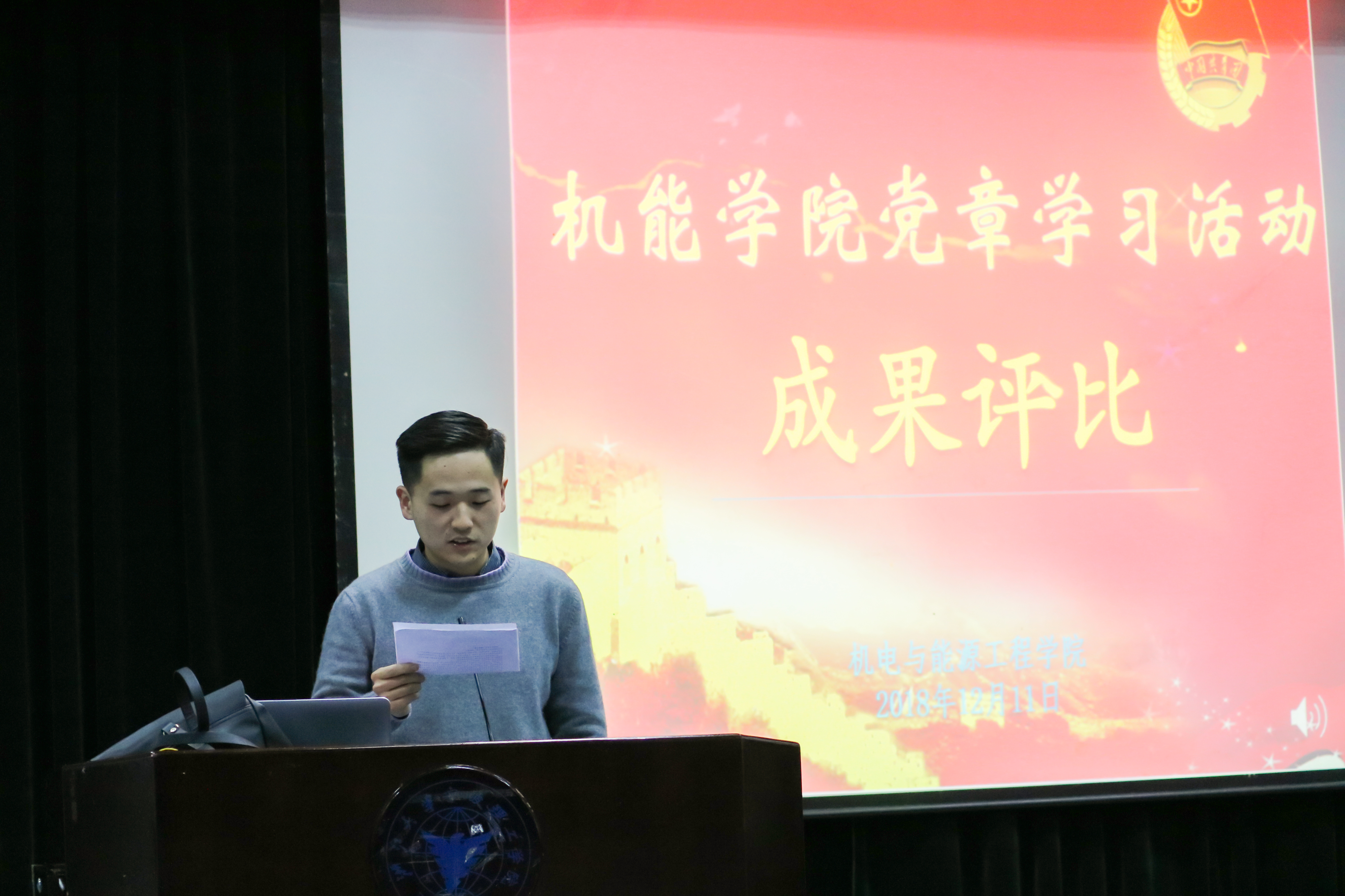 为更好地学习宣传贯彻党的十九大和团十八大精神,充分发挥共青团组织在改进和加强老员工思想政治教育中的作用,太阳集团tyc4633团委组织各团支部在11、12月集中开展了团支部“党章学习”活动,并于12月11日晚6点在NF103举行党章学习活动评比“成果汇报”环节暨公司党章学习活动评比颁奖典礼。参加此次活动的有太阳集团tyc4633团学骨干、各员工党支部委员,15、16级各团支部委员、各班班委、积极分子、党员以及18级全体员工。