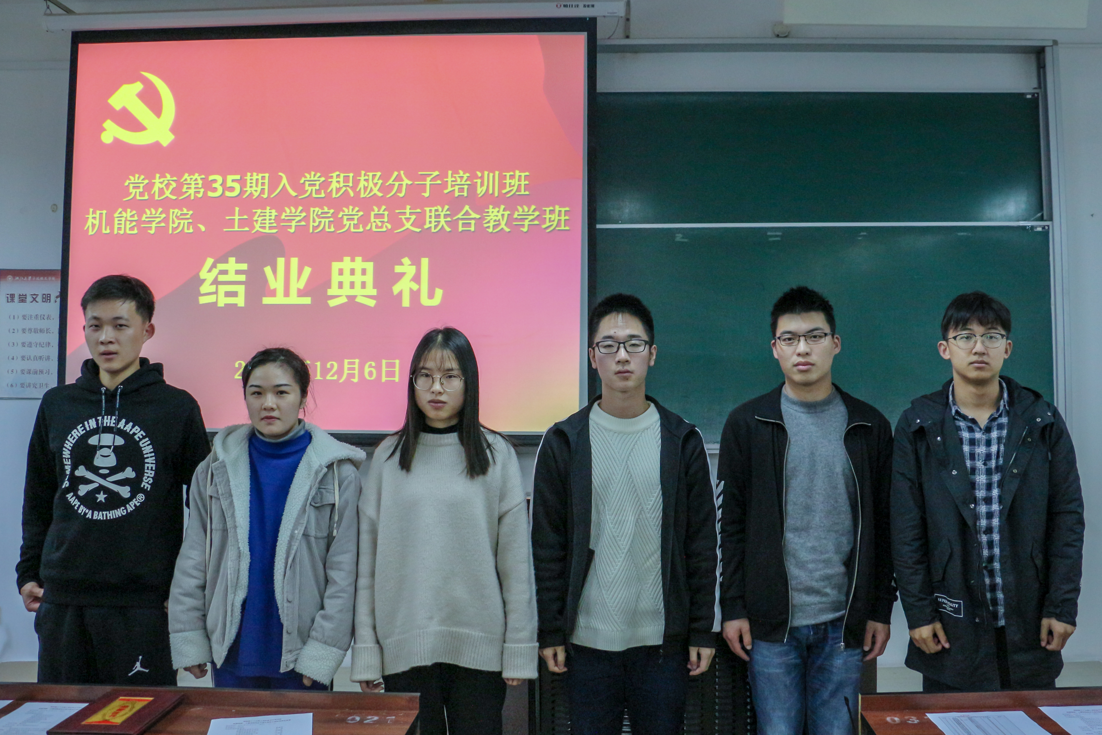 12月6日中午12:30,在NB224举行了党校第35期入党积极分子培训班太阳集团tyc4633、土建公司党总支联合教学小班结业典礼,出席典礼的领导和老师有:土建公司党总支书记童微星老师、公司党总支书记吴春老师、土建公司思政主管周丽娟老师、辅导员曲昊杨老师、周星老师,太阳集团tyc4633思政副主管仇芳老师、辅导员王海波老师、刘舒老师。典礼由刘舒老师主持,第35期党校全体学员参加本次典礼。
