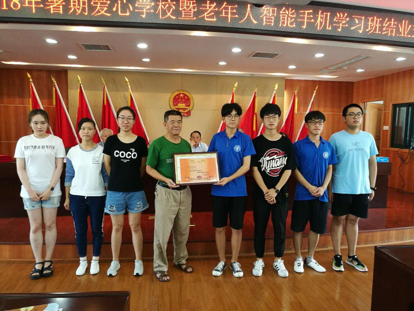 暑期社会实践团队以庆祝改革开放40周年为契机,用支教的形式,将红色主题融入本次实践活动,将他们所学到的知识和积累的经验,传授给龙观乡的孩子们,将信息化时代所带来的便利带给老人。对于孩子们来说,这是一个拓宽眼界的机会;对于老人们来说,这是一个学习应用当代科技的机会,去感受祖国改革开放40周年以来翻天覆地的变化的机会。实践队的不懈努力也获得了当地政府的高度认可,龙观乡人民政府、龙观乡关工委为他们颁发奖状。