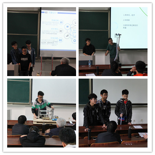 比赛开始首先由钱孝华老师对竞赛要求做出了说明,接着同学们按照组序上台介绍自己的设计并递交说明书、图纸、展示样机。一个个精彩的创意展现在大家的面前,“机器换人”的理念贯穿其中,评委老师针对同学们的成果进行多方面的评估并给予建议。正所谓心怀梦想方能踏足远方,成功的路上少不了同学们辛勤的汗水,少不了坚定不移的意志,也少不了指点迷津的灯火。最后沈萌红老师总结并为各个项目一一指出建议和下一步改进的方向。随着晚风的袭来,本次机械创新大赛就此落下帷幕。