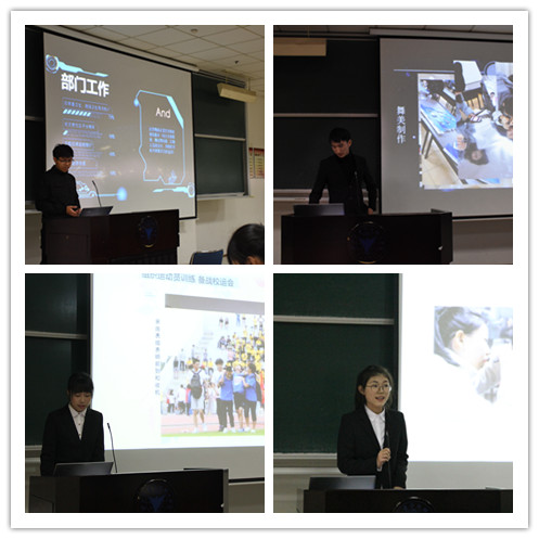 随后,员工会大会拉开帷幕。首先是公司员工会主席朱金杰同学和员工会主席助理沈唐骏同学分别代表员工会致词。他们对过去的工作进行了回顾,对辛勤工作的机能员工会成员表示感谢,并和大家分享了作为员工干部所学到的经验。最后主持队队长杨状状同学宣读了各部门成员对本部门的总结,其中包含了每个人对于部门的感谢、对部门其他成员想说的话、自我所得到的锻炼。那些饱含深情的话赢得了在座同学的热烈掌声,员工会大会也在大家对过往一年的美好回忆中圆满落下帷幕。