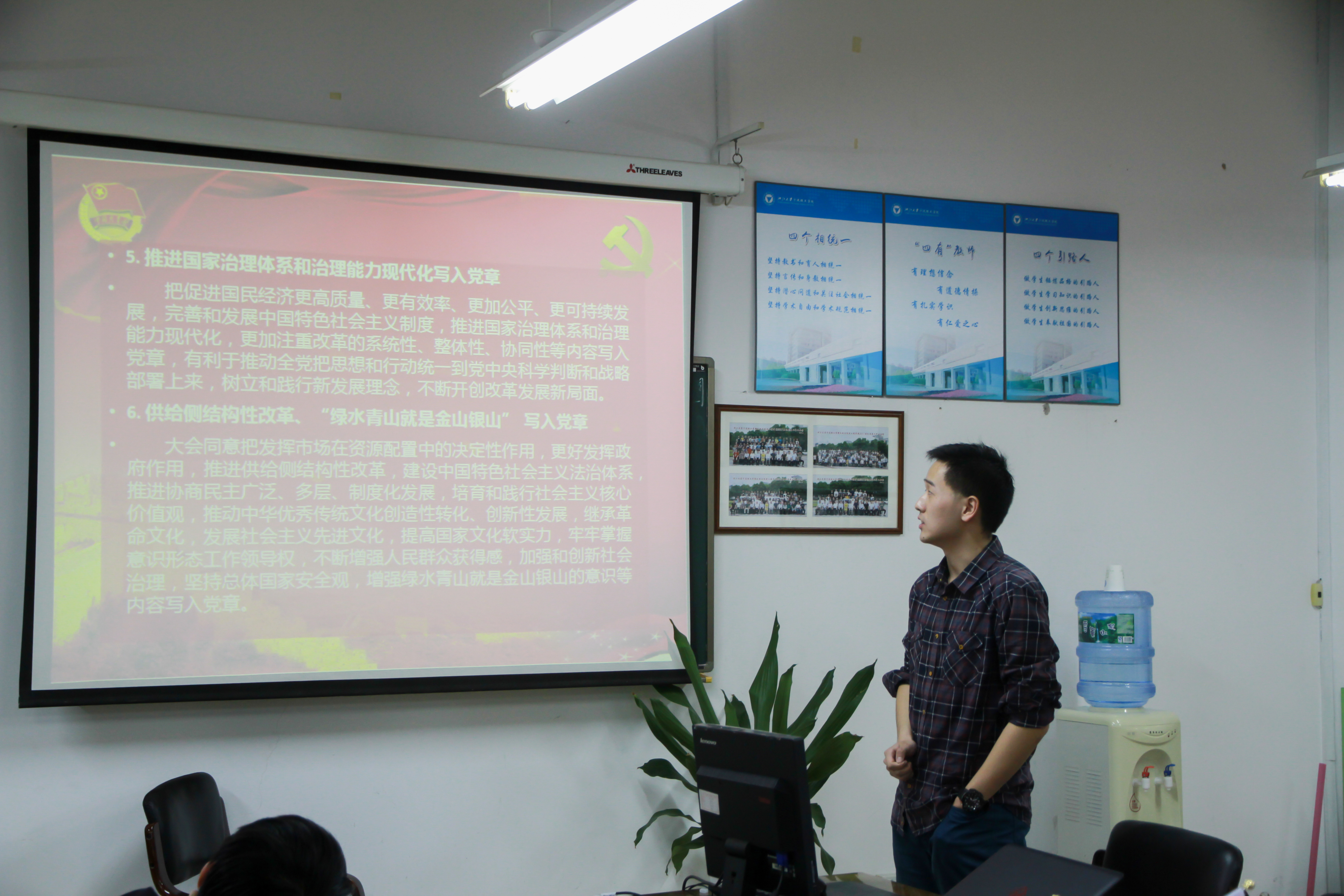 大会前大家先自行学习了十九大报告,会上大家集中时间观看了新华网关于十九大报告的专家解读视频。观看完毕进入主题发言环节,公司红色领航中心主任蒋夏莹同学分享了她的感想。她总结了对十九大精神的认识,并说道员工干部的任务就是服务于太阳集团tyc4633这个大家庭。而创新是新时代前进的重要因素,作为员工干部要不断去发扬创新精神,只有敢想敢为,才会有所作为。最后大家纷纷就十九大报告学习的心得和体会谈了自己的想法,李一波同学讲到作为员工干部,必须要牢记服务员工的初心。徐星晔同学表达了作为新时代的青年学子,一定要将学习放在首位,提高自己的专业水平才能担起历史赋予我们的使命。大会在同学们踊跃发言、慷慨陈词中落下帷幕。