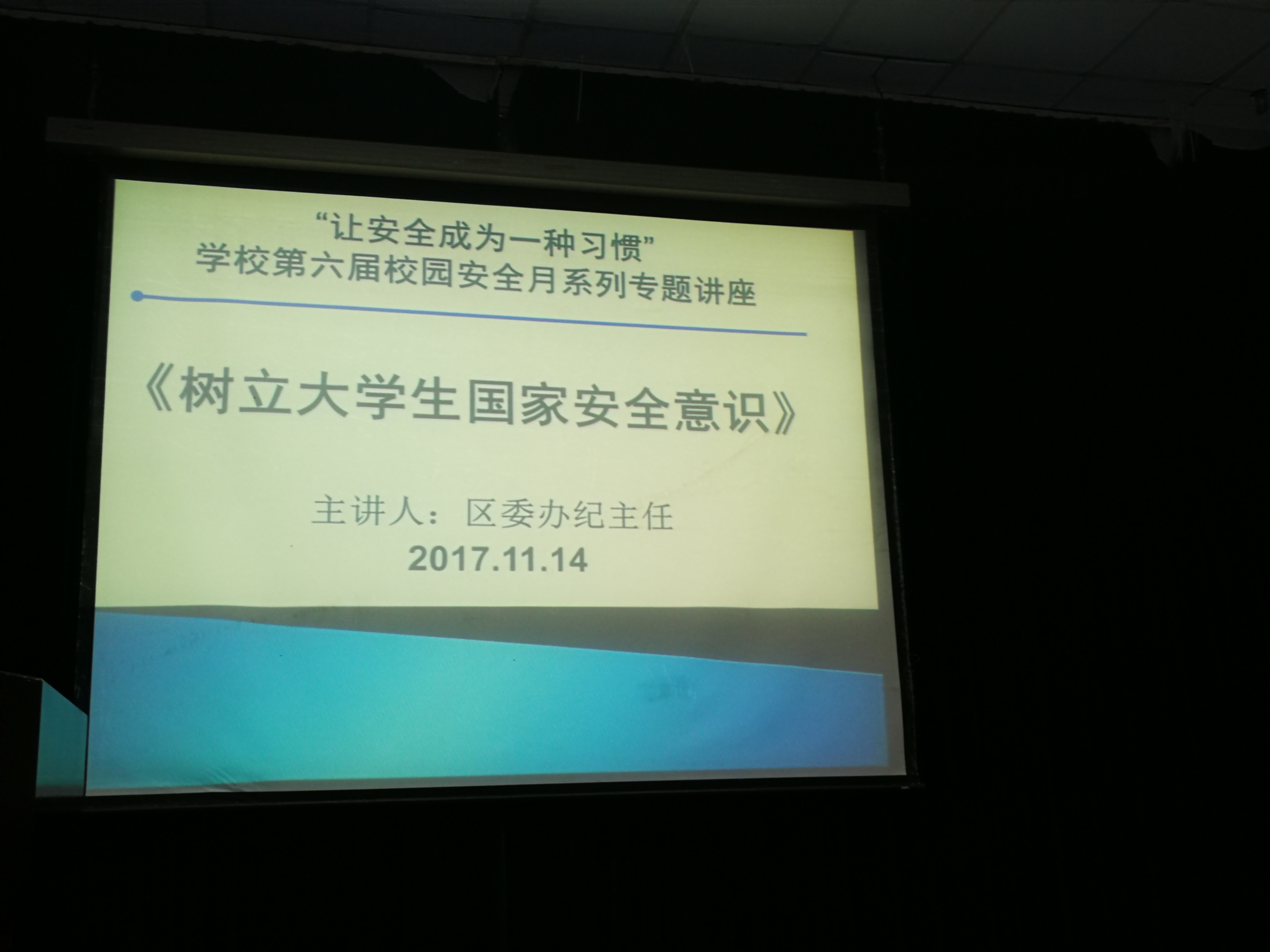 “让安全成为一种习惯”公司第六届校园安全月系列活动中,由太阳集团tyc4633和公司保卫处联合举行的国家安全讲座于11月14日下午在NF103进行。