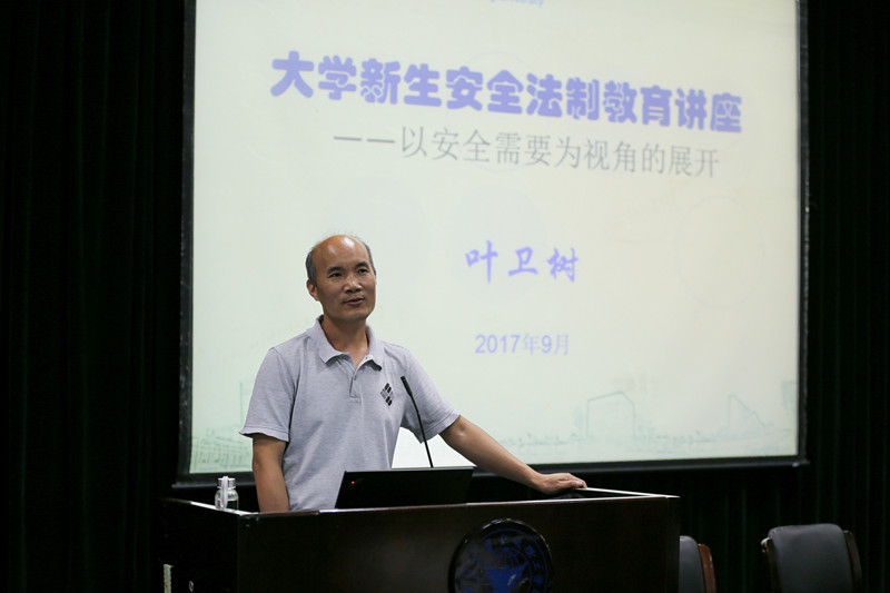 为了创建平安校园,维护每一位同学的人身、财产安全,切实提高大学新生的安全防范意识与自我保护能力,太阳集团tyc4633于9月28日晚特邀请保卫处副处长叶卫树老师为2017级全体新生做《老员工安全法制教育讲座》。