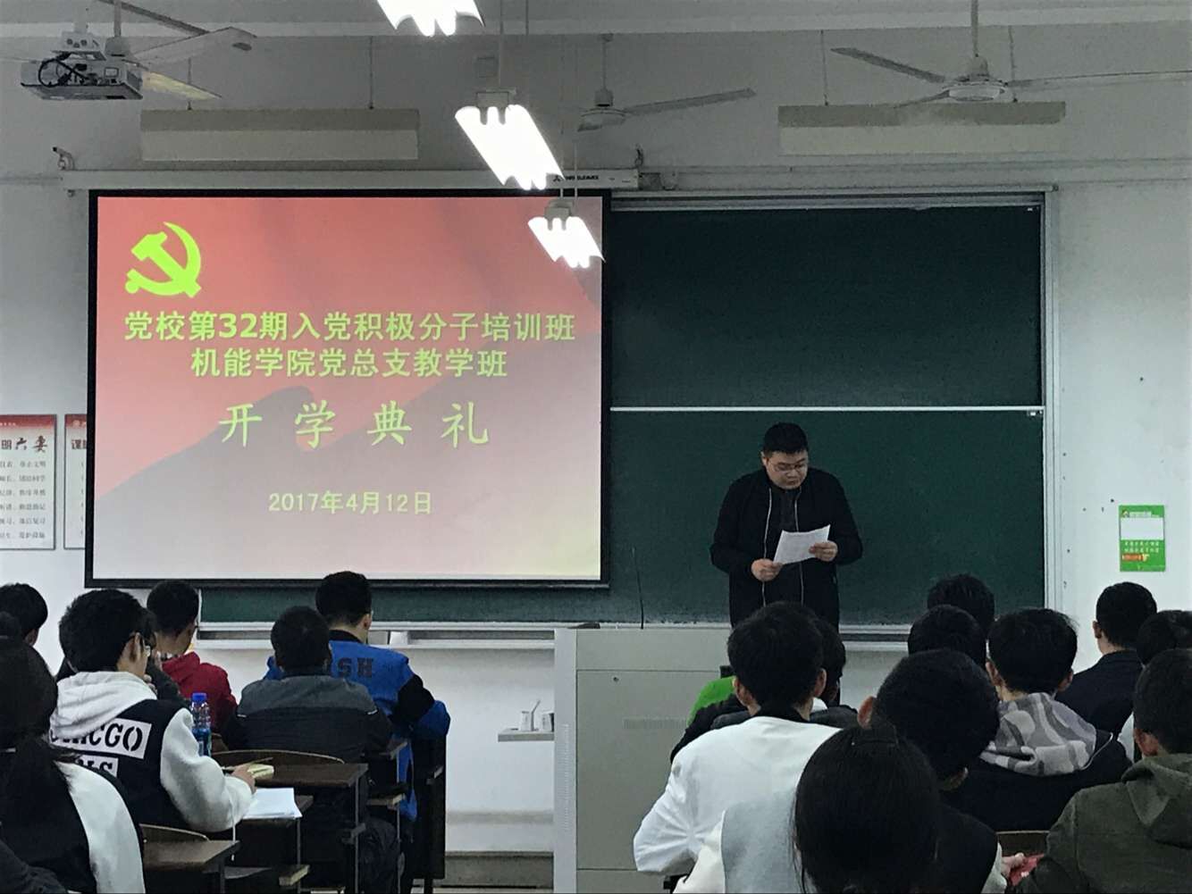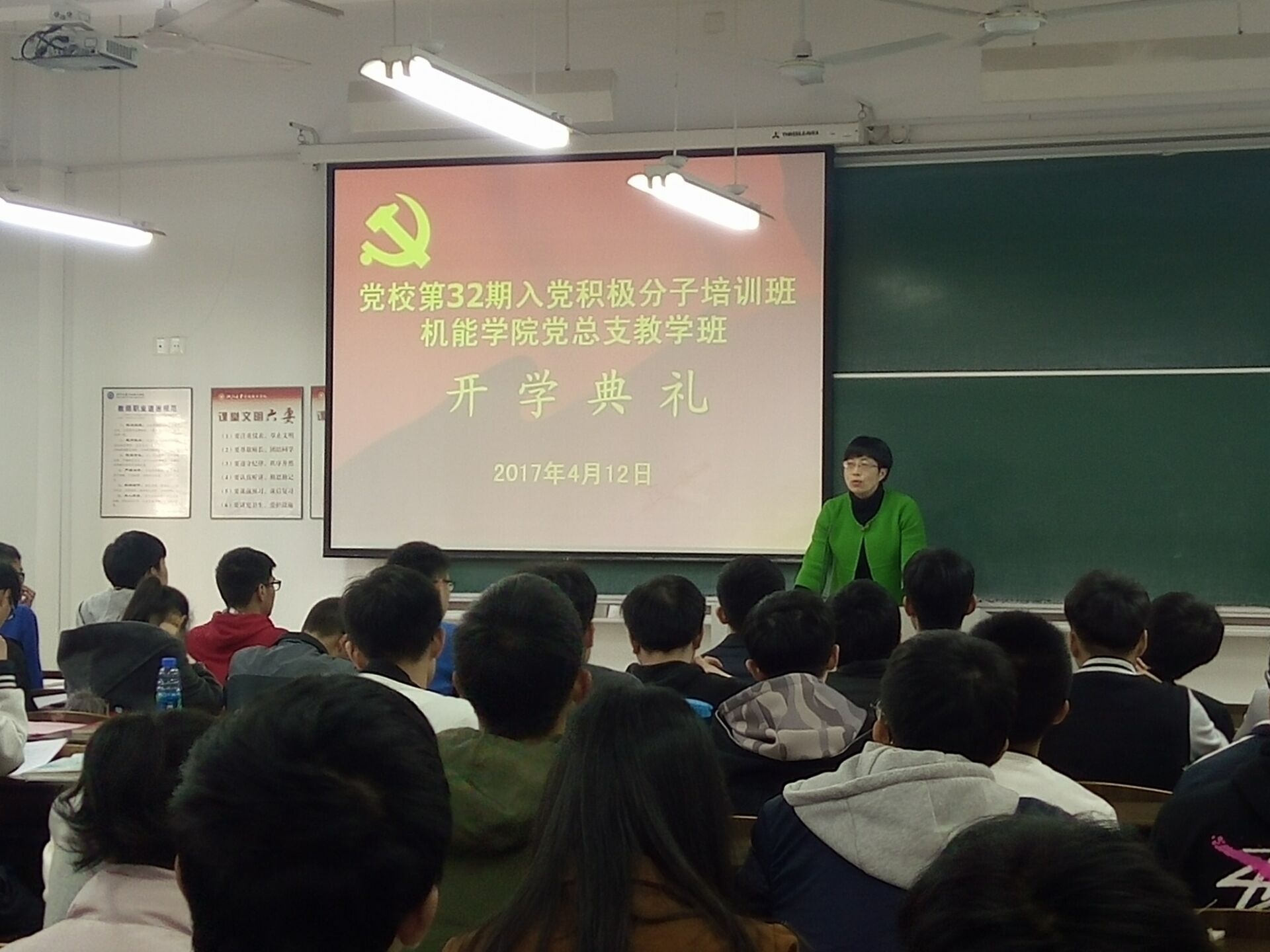 在热烈激昂的氛围下,党总支书记吴春老师为学员们做动员讲话。吴老师希望党校学员要做到从思想上真正入党,认真学习党的章程,端正入党动机,同时对本次培训提出三点要求和建议:第一,要坚持理论联系实际的原则,在统一思想和率先示范方面要身体力行;第二,要加强组织纪律性,思想上高度重视,严格要求自己,争取顺利通过考试;第三,希望学员们在接下来的党校学习生活中,能得到更进一步的提升,最终成为能说、能写、能干的机能人。