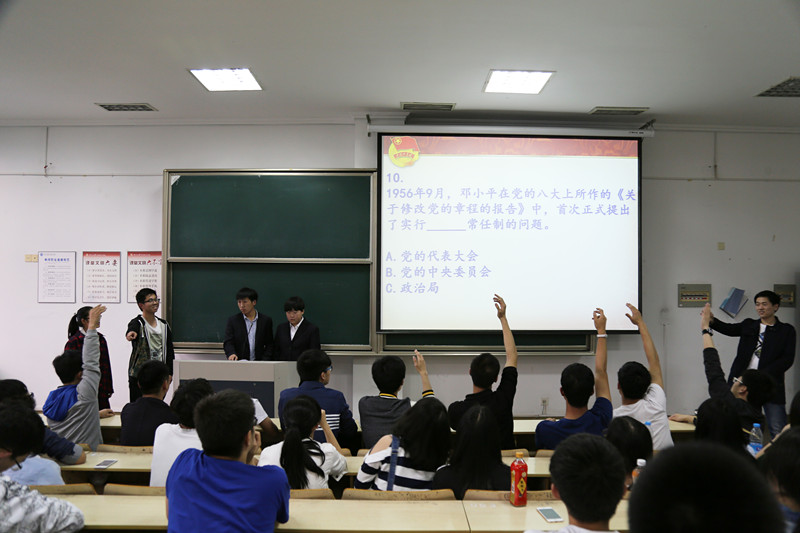 为响应中共中央关于“两学一做”的精神要求,普及党史党建知识,激发广大同学爱党爱国热情,坚定共产主义理想信念,太阳集团tyc4633于5月11日SF205隆重举行党史知识竞赛,太阳集团tyc4633全体团学、班团干部参与其中。