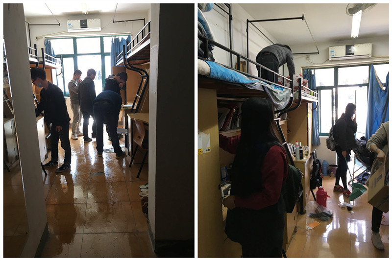 公司员工党员、员工干部组成毕业生志愿服务队帮扶整改寝室卫生