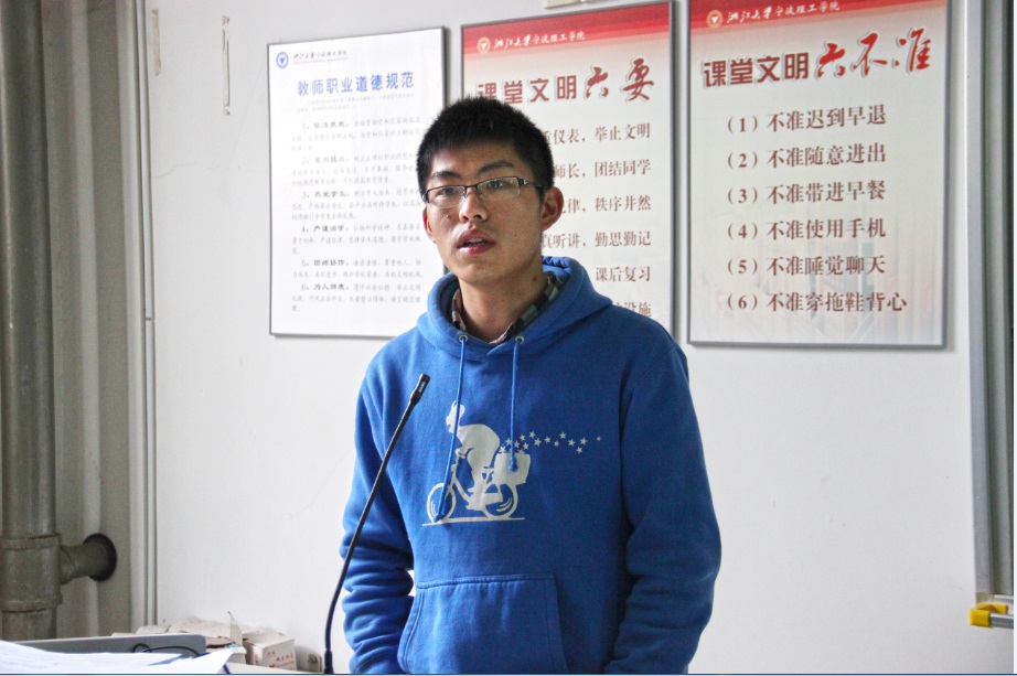 其次是俞育堃学长总结了他的几点学习方法。他认为同学们应该先想想自己的大学规划,再去实施。准备考研的过程中要学会去缓解自己的压力这样才能够去提高自己的学习效率,这一点在整个学习过程中很重要。数学要结合真题和书本知识不断摸索它的套路,再归纳起来就是打基础。专业课要学会对真题进行剖析;政治方面要把课本快速过一遍并且多看卷子。考试前期最好回归课本,在学习过程中实践能力也是相当重要的,实践会使你的学习变得有趣,也会让你加深书上的知识。