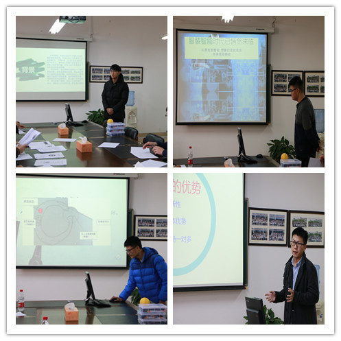 本届“创梦杯”创意大赛的主题是“关爱老人,服务社会。”进入决赛的六个小组的作品真是脑洞奇开、创意无限。有类似于小米手环的“智能守护”,有帮助老人行走的“助步器”,有为老人贴身设计的“智能服装”等等。各个小组分别派一名代表以PPT的形式向评委老师们讲解本组的设计作品、设计理念以及作品的优点。专业老师认真聆听,并在同学讲完后提出了自己的困惑和对作品某些方面的质疑。而同学就老师的问题仔细分析,然后从容不迫的解答。