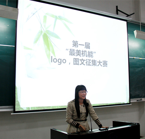 比赛伊始,主持人王佳妮同学介绍了本次大赛的主要规则,首先由Logo设计选手用言简意赅的语言讲述其设计的出发点和深层含义,他们以图画的形式宣扬机能团委、员工会的团结精神,并传达出对机能团学美好未来寄予的新希望;这之后将由摄影选手向大家展现理工校园的一角,传达了“理工不是缺少美,而是缺少发现美的眼睛”的理念;征文选手的作品也早早发到了各位评委手中,每一位参赛员工的作品都展现了思维的独到之处,文笔流畅自然,各位评委仔细阅读后打分推选。