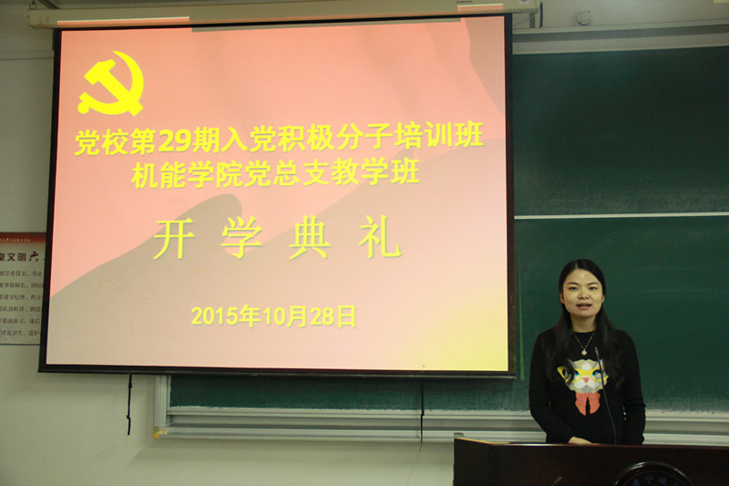 10月28日晚18点整,浙江大学宁波理工公司党校第29期入党积极分子培训班公司党总支教学班开学典礼在NB228顺利举行。学工办思政主管胡鹿鸣老师,团委书记仇芳老师、党校班导师朱彬娴老师和全体党校学员出席了典礼。典礼由朱彬娴老师主持。