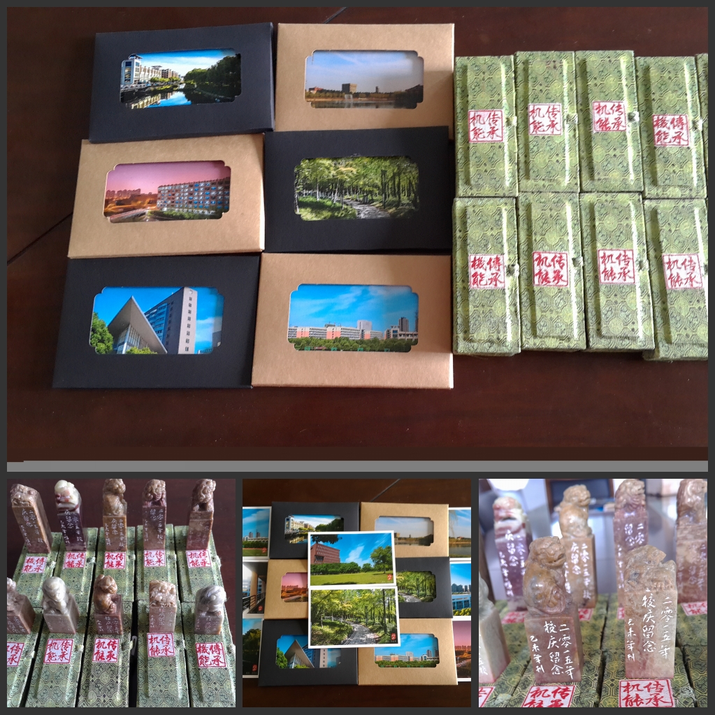 公司为迎接员工到来,精心准备了公司员工墙和机能特色的返校活动纪念品。此前向公司同学征集了摄影作品和篆刻作品作为这次的纪念品素材,设计了“母校风光”纪念明信片,包装专业的俞坚道同学为员工设计了一系列“机能传承”印章。员工墙上留有每一位机能学子的身影。