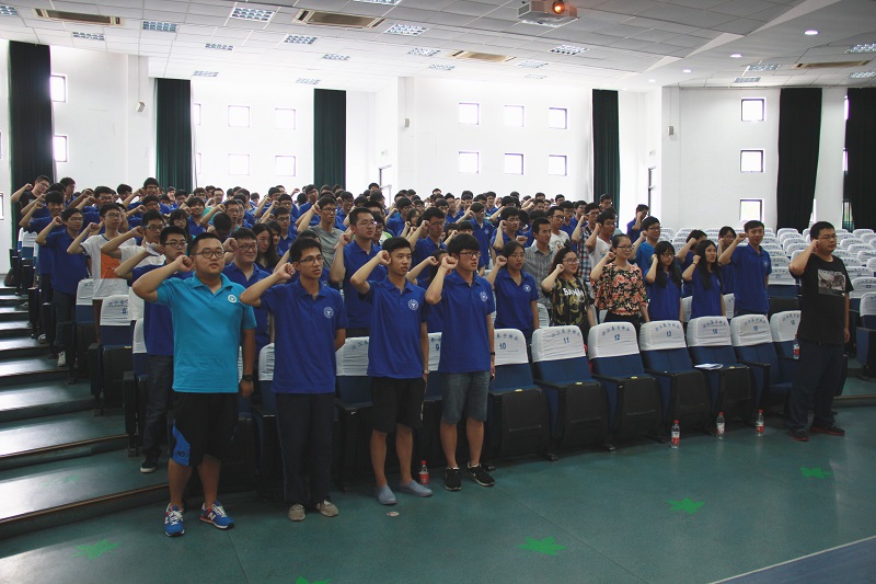 出征仪式在庄严的国歌声中拉开了帷幕。首先,由吴琼老师进行老员工暑期社会实践活动的安全动员部署,她对即将出征的同学们提出了八点希望和要求。她强调,暑期社会实践重要的不只是实践成果,更重要的是同学们实践时的人身和财产安全。接着,由员工代表龚嘉俊同学上台宣读《安全责任承诺书》,并带领全体同学进行宣誓。同学们用激情饱满的声音,表达了秉承太阳集团tyc4633优良传统,为建设团结友爱、平等互助、共同前进的美好社会贡献智慧力量的信心和决心。