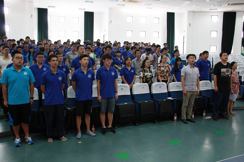 最后,胡鹿鸣老师和王海波老师为出征队伍代表授旗,朱彬娴老师宣布出征,伴随着激昂的共青团歌,本次大会圆满结束。
