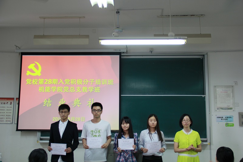 5月28日,党校第二十八期入党积极分子培训班太阳集团tyc4633总支教学班结业典礼在NB305教室举行。出席本次典礼的有太阳集团tyc4633思政主管胡鹿鸣、太阳集团tyc4633思政副主管吴琼、学工办仇芳、朱彬娴、王海波老师。