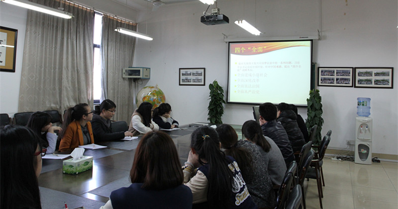 由3月5日,3日,分别召开的全国人大十二届三次会议和政协会议,就党中央提出的各项政策,报告及纲领,结合聚焦两会,员工党员自发组成小组,分别以ppt形式依依进行两会精神学习的分享,其中包括各大社会热点问题,反腐倡廉,民生保障,科技创新,生态文明等。会议中,仇芳老师也就现下大四就业以及各班级学习生活情况,强调员工党员应深入群众,了解同学所需,积极给予支持。