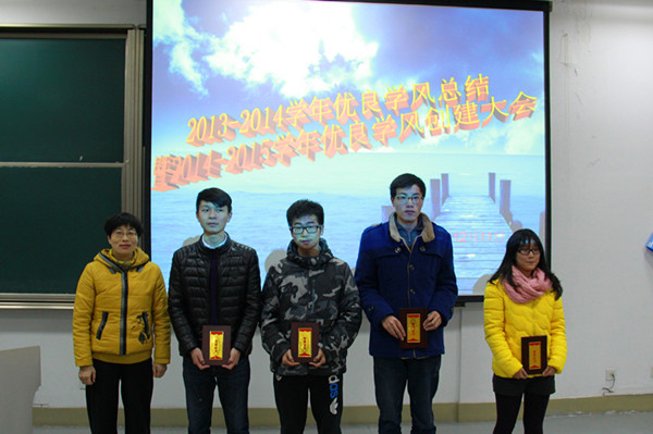 首先,朱彬娴老师对公司2013-2014学年的评奖评优工作进行总结,并重点强调奖学金评定细则的要求及相关注意事项。然后由胡鹿鸣老师宣读13-14学年获得公司“优良学风示范班”、“优良学风班”和公司“优良学风创建班”等荣誉称号的班级,并为他们颁奖。