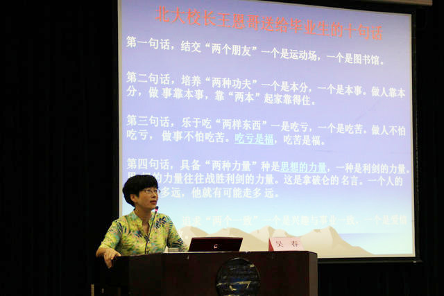 演讲开始前,吴春书记亲切地与台下的机能学子互动,耐心地询问大家新学期的学习、生活情况,并对大家在过去几天遇到的问题给予了一定的建议。演讲开始后,吴书记的风趣、幽默迅速调动起全场的气氛,一个个生动的例子引起现场掌声阵阵。她首先引用一毕业学长面试找工作的例子,教导员工们实践与书本一样重要。然后以“做个负责的孩子”为主题,从“做个让父母省心的孩子”、“做个让父母开心的孩子”、“做个让父母骄傲的孩子”三个问题着手开启了讲座主线。吴书记以自己从教二十余年的经验,给我们放映了未来大学之路上可能会遇到的一些问题,号召我们做个“诚信、博学、自律、纯真”的新一代机能人。