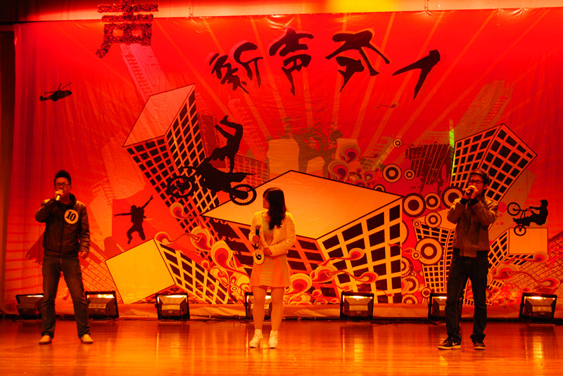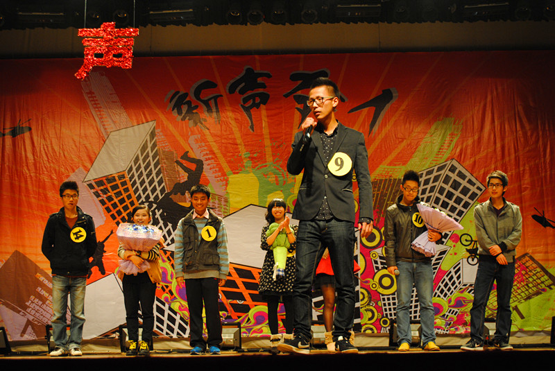 在第一篇章“新声初遇”中,热辣似火的开场舞《hug me once》,瞬间引爆整场气氛。在十四位歌手以舞蹈《江南style》集体亮相并发表参赛宣言手,比赛正式开始,选手双双进行PK。选手在台上唱歌,亲友团在台下呐喊,更是有许多观众上台向青睐的选手献花,晚会氛围异常热烈。在好声音停下以后,由评委打分决出七名歌手晋级下一轮。接着是第二篇章“新声成长”,待定的7位选手之间进行“一分钟清唱”的比拼,在经过14位大众评委的投票后,杨梓麟、厉虹、施金威等成功晋级。在最后的“新声,飞扬”篇章中,十位班助化身为西游记中的仙女带来集体舞蹈《西游外传》,在诙谐幽默中展现了他们对新生满满的爱。最后经过评委的专业评审和大众评审的投票,樊睿菡、孟浩伟、杨梓麟分获冠、亚、季军。杨梓麟获得最佳人气奖,贾新源获得最佳台风奖。