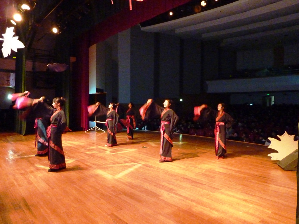 民族文艺4个:开场大鼓舞《踏歌起舞》、器乐表演《青花瓷》、子今汉服社的特别表演、民族舞《女儿河》;