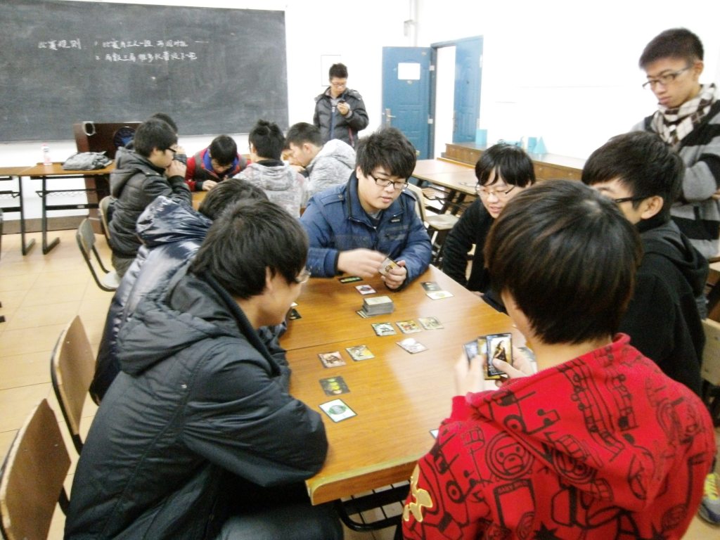 12月11日下午13:30,太阳集团tyc4633桌游协会在SA103举行了一场有趣的桌游比赛。此次比赛共有八组参赛队伍,每组有三名组员。比赛采取预、决赛制,首先随机将八组两两配对进行预赛,采取三局两胜制。胜出的前四组再随机配对进行决赛,最后决前三强。