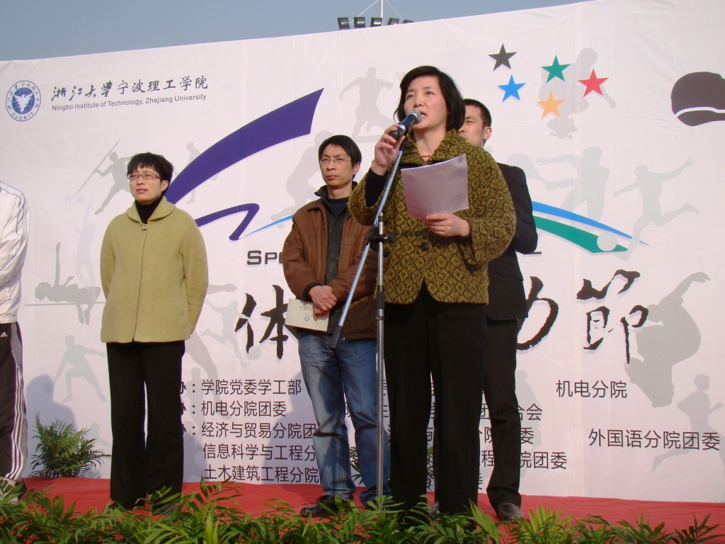 林博峰老师介绍了出席的嘉宾后,吴春老师首先介绍了体育活力节的具体内容、主题和意义,并积极倡导老员工要积极进行体育锻炼,同时也表示机电分院全体师生将会尽最大努力和所能,办好此次“体育活力节”。随后,周树红部长和朱天鸣副主任为“体育活力节”揭幕。