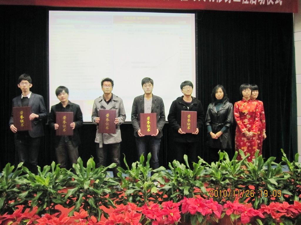 之后,大会进行了优良学风班表彰、颁奖仪式,李建新副经理给获奖班级代表们颁发证书并与之合影留念。