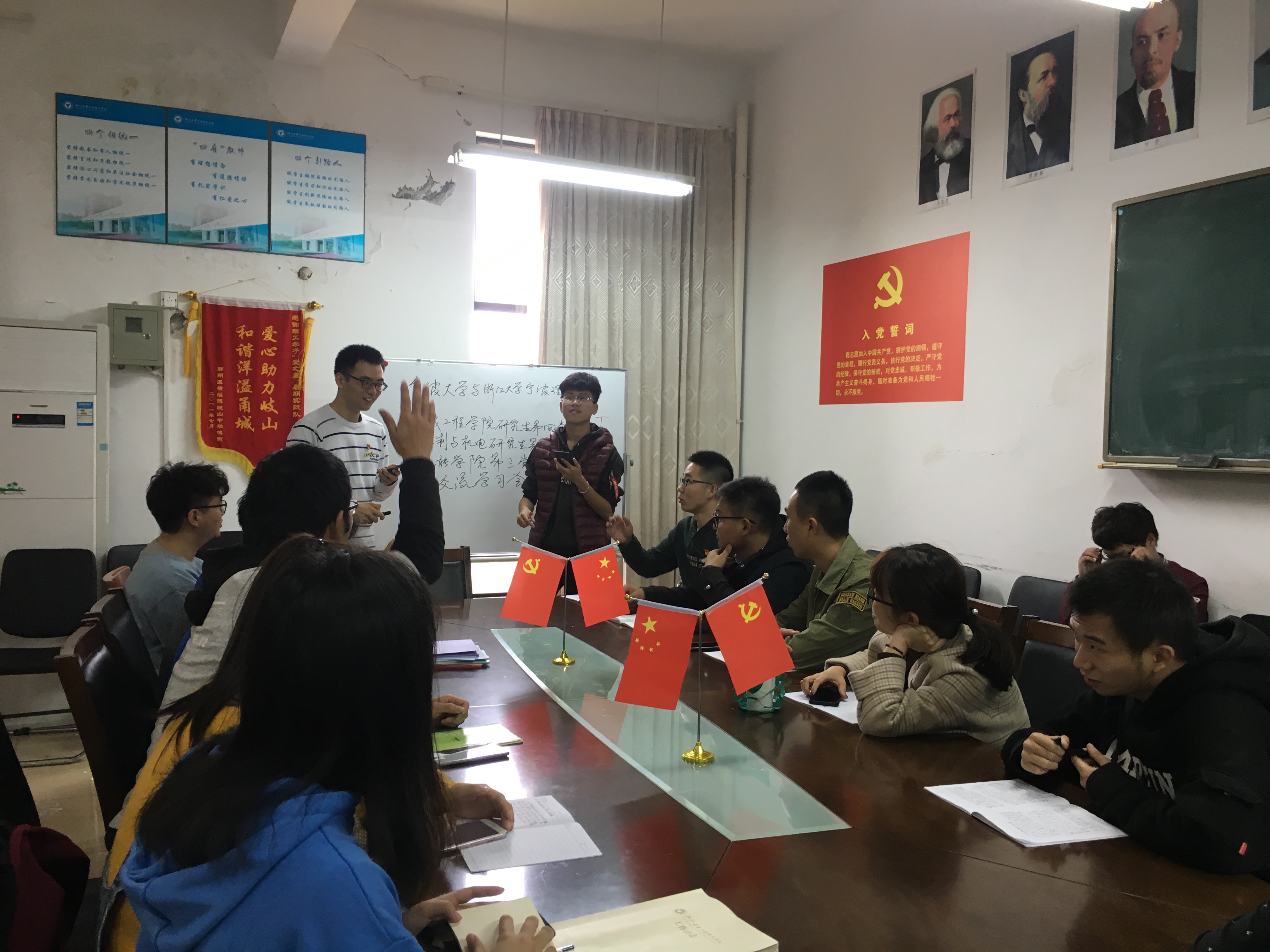 为强化支部党员的先进性,促进相互间的学习交流,太阳集团tyc4633员工第三党支部于12月2日下午与宁波大学机械研究生党支部(宁波大学机械工程公司研究所第四党支部,机制与机电研究生第二党支部)进行联谊,开展了一次学习交流会。会议主题:“一个党员,一面旗帜”。 本次交流会内容十分充实,由室内到室外,从多角度进行了互动交流。